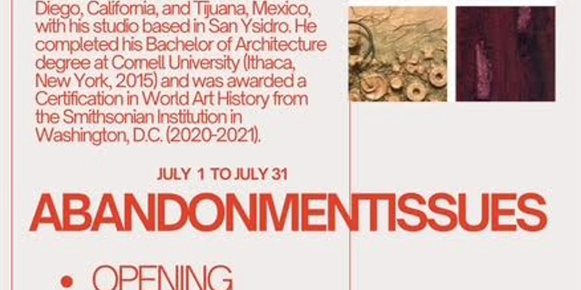 Exhibition Reception – July 10 from 5 to 8PM. AbandonmenTissues by Alvaro Alvarez The East County Art Association is proud to present the Opening Reception of AbandonmenTissues on July 10, a powerful exhibition by artist and architectural designer Alvaro Alvarez in ECAA Gallery 1. At the heart of this exhibition is Alvarez’s creative process of recycling and transformation. Through his work, objects often perceived as discarded or worthless are reimagined into compelling works of art. Materials once considered trash are carefully reassembled and transformed, revealing unexpected beauty and meaning. For Alvarez, this process carries a powerful message: problems are also opportunities. By reclaiming abandoned materials, the artist demonstrates how challenges whether environmental or personal can become the foundation for creativity, reflection, and renewal. Rather than passing judgment or pointing fingers, AbandonmenTissues seeks to inspire action through creativity. Just as Alvarez discovered in recycling a personal way to respond to environmental concerns, each visitor is invited to reflect on their own worries and challenges, and imagine how they too might transform them into something meaningful. Alvarez’s practice is also deeply connected to ocean and environmental conservation, using recycled materials as a way to highlight the importance of reducing waste and protecting our natural ecosystems. Through this artistic approach, the exhibition connects creative expression with environmental awareness, encouraging viewers to rethink the relationship between consumption, waste, and the health of our planet. The Grand Opening Reception on July 10 launches a months-long exhibition and will feature special activations designed to reinforce the artist’s central thesis: difficulties hold unlimited potential. Through art, dialogue, and immersive experiences, visitors will witness how creativity can flourish even in adversity, motivating us to imagine new possibilities for ourselves, our communities, and the environment. AbandonmenTissues ultimately reclaims creativity as a tool for action, addressing the challenges of our time from environmental concerns to the most intimate inner battles and inviting audiences to see transformation not only in art, but in life itself. About Alvaro Alvarez- Alvaro holds a Bachelor of Architecture from Cornell University (Ithaca, New York) and a Certification in World Art History from the Smithsonian Institution in Washington, D.C. His interdisciplinary practice blends art, architecture, and social reflection, creating immersive works that encourage dialogue and new perspectives. Is a Free event ! for more information Contact Linda Baltodano President ECAA (619)499-7758