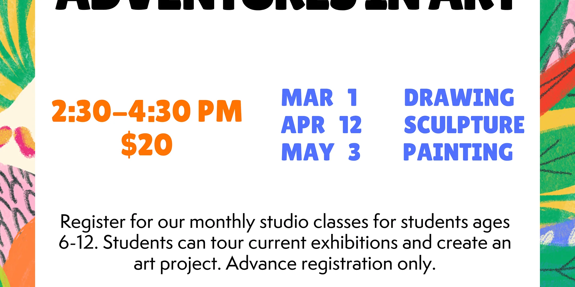 Register for our monthly studio classes for students ages 6-12. Students can tour current exhibitions and create an art project. Advance registration only on our website. Class size is limited, and scholarships are available. To register, click here.