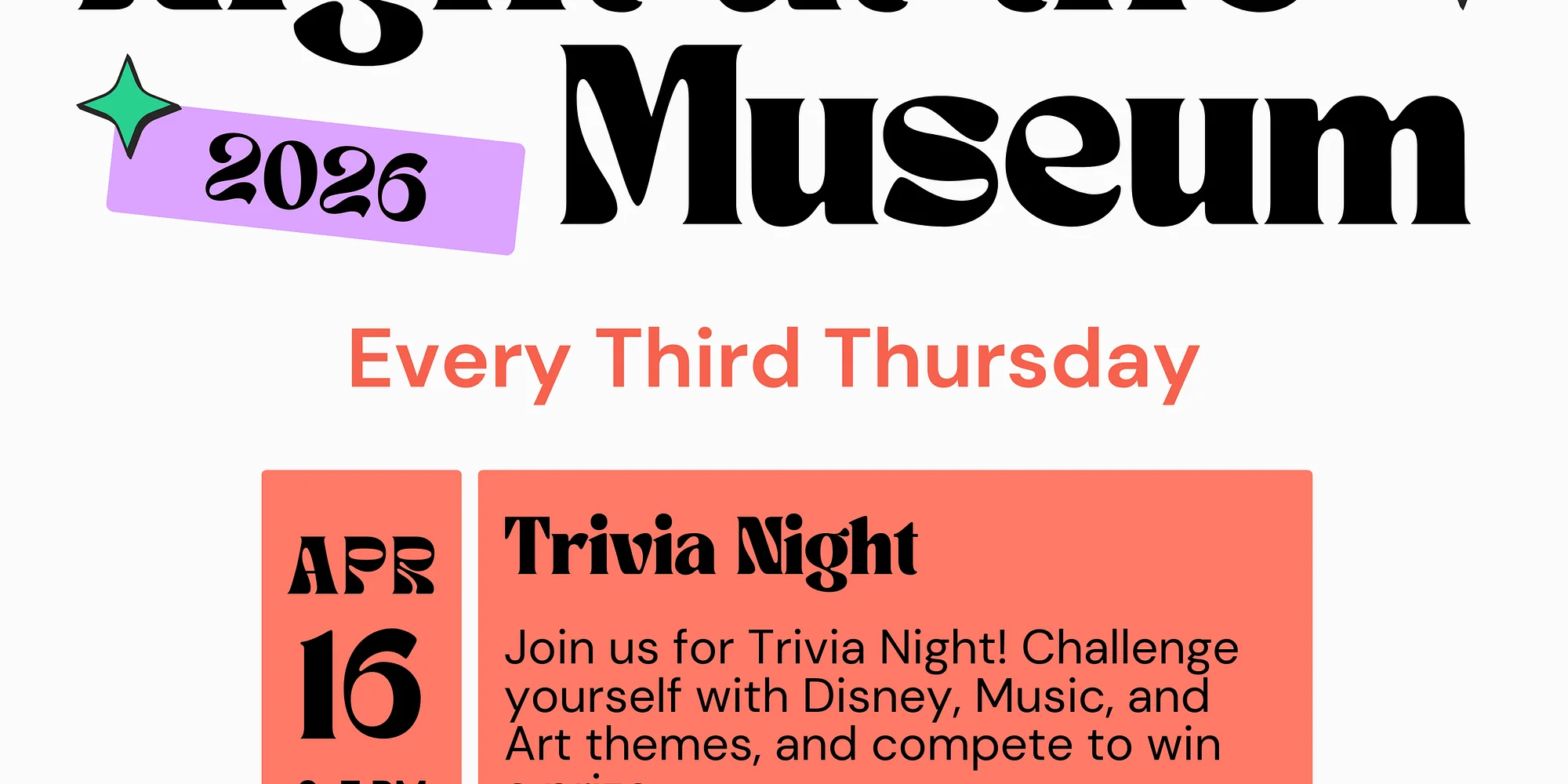 Introducing Night at the Museum, an exclusive Members-Only evening every third Thursday of the month! Each event has something different to offer for Museum Members, including art activities, lessons, exclusive tours, programs, family and friends nights, and more! In April, join us for Trivia Night! Challenge yourself with Disney, Music, and Art themes, and compete to win a prize. To become a Member, click here.