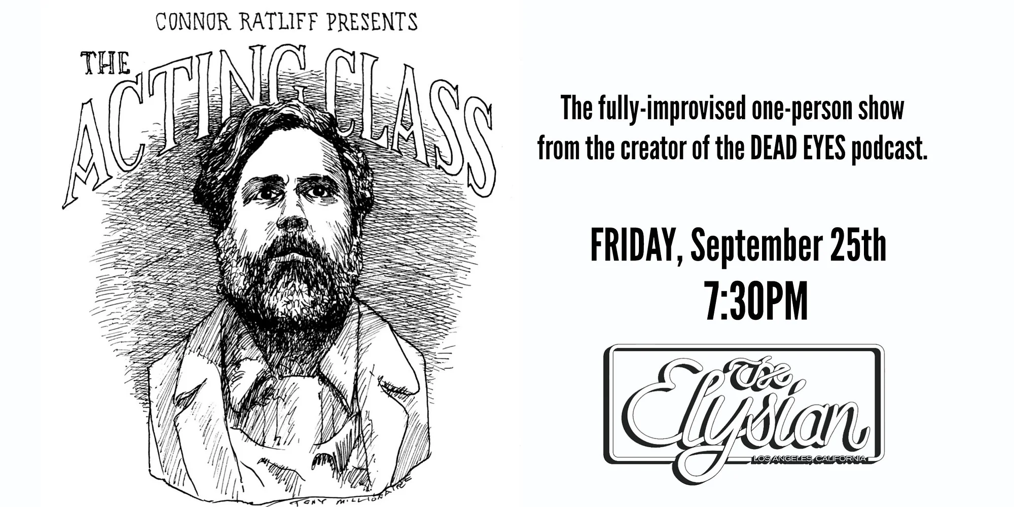 🎭 〰️ 🎭 〰️ 🎭 〰️ $20-25 | BUY TICKETS Close Buy Tickets Close Professional actor/comedian CONNOR RATLIFF (Dead Eyes) performs a fully-improvised one-person show that pretends to be a real acting class. Connor Ratliff is a New York-based actor/comedian and creator of the award-winning, critically acclaimed podcast, Dead Eyes, which was included on multiple recent lists of “the best 100 podcasts of all time” and featured in the book, The Podcast Pantheon. His film & TV credits include The Marvelous Mrs Maisel, Ghosts, Bob's Burgers, The Great North, Jellystone, Super Duper Bunny League, Étoile, Search Party, Orange Is The New Black, Last Week Tonight With John Oliver, The Daily Show, Don't Think Twice, Pinball: The Man Who Saved The Game, Run Amok and the Mean Girls movie musical. You may have also heard him on This American Life, Comedy Bang Bang, or in the audiobook edition of Tom Hanks’ New York Times Best Selling debut novel, The Making Of Another Major Motion Picture Masterpiece. A fixture of the NYC improv comedy scene, performing for the past 15 years at the Upright Citizens Brigade Theatre, he can now be seen most weeks in the improvised show RAAAATSCRAPS on the lower east side at Caveat, hosting the long-running cult comedy series, The George Lucas Talk Show, or performing his show fully-improvised one-person show, CONNOR RATLIFF presents THE ACTING CLASS. *Doors open 30 minutes before showtime* Seating begins 15 minutes before showtime, there is NO LATE SEATING you may lose their seat(s) to the standby line without refunds. Seating is general admission - seats are available on a first come first serve basis, from the front of the theater to the back. If you want to sit closer, be sure to arrive earlier. We will have a standby line for sold out shows 30 minutes before doors open. If there are no-shows that create open seats, we will be able to sell additional tickets. In the event of a sold out show, ticketholders who arrive 30 minutes after show start may lose their seats to the standby line. No refunds. *Lineup subject to change* TICKETS ARE NON-TRANSFERABLE | We do NOT honor tickets through third party sellers.