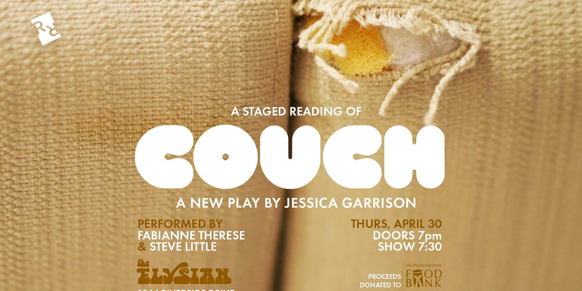 🛋️ 〰️ 🛋️ 〰️ 🛋️ 〰️ $16-20 | BUY TICKETS Close Buy Tickets Close A staged reading of the new play by Jessica Garrison - a dark comedy about a girl who eats her couch, and the upholsterer who loves to feed her. Raina, who has just about given up on civilized society and turned to her couch to satiate all her human needs, implores Maxim, a loyal and obsessive aficionado of high density foam, to give her one last fix. Jessica Garrison is a writer/director based in NYC and LA. She started writing for the stage as a founding member of theater company, Public Assembly, where an abridged version of Couch was first developed and produced. She has since moved to New York where it was excerpted and debuted in her Off Broadway trilogy called Weird But Okay. This brand new full-length iteration of Couch will be read for the first time by actors, Fabianne Therese (Dolly, John Dies at the End) and Steve Little (Eastbound & Down), with stage directions by Nic Murphy, and directed by Jessica Garrison, produced by Frank Mosley (Freeland, OBEX). This is the fourth in a series of staged readings by the Los Angeles based collective REQUIRED READING. Proceeds from this performance at The Elysian Theater will go toward Los Angeles Regional Food Bank, fighting hunger since 1973 by providing food, school lunches, and resources to communities facing food insecurity. Their mission - no one goes hungry in Los Angeles. *Doors open 30 minutes before showtime* Seating is general admission and begins 15 mins before showtime. Late seating is at the discretion of individual shows. Lineup subject to change. Tickets are non-transferable. We do NOT honor tickets from third-party sellers. No Refunds.