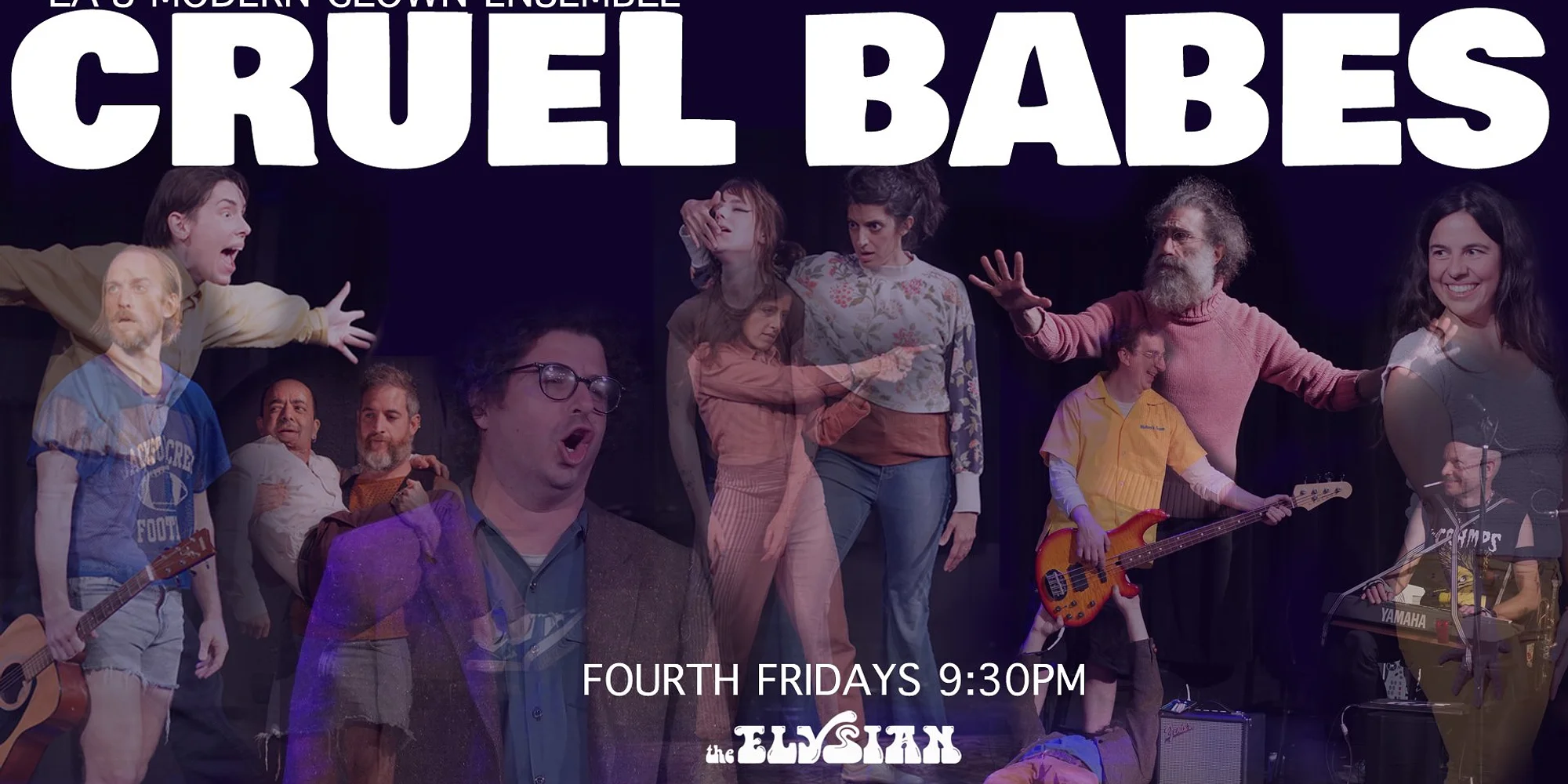 👶 🎸 👶 🎸 👶 🎸 $15-20 | Buy Tickets Close Buy Tickets Close Live-directed by Cirque Du Soleil front man John Gilkey (“Brilliant” - LA Times), the modern clown ensemble, Cruel Babes, invites the audience into a fever dream of physical comedy and extended absurdist composition for a new and once-in-a-lifetime ride each month. Featuring ten top performers (comedians, actors and musicians), it is a direct descendent of the underground hit, Wet The Hippo – the show that kicked off LA’s modern clown scene back in 2012. Join Cruel Babes for this special late night experience as we usher you into a liminal space where the collective unconscious rises to the surface and swallows you whole for a nightcap full of live music, liberated laughter and deep deep feels. “Somewhere at the intersection of the sacred and the profane, of poetry and dire scatology, of clown and Dada, of community and exile, of fourth walls and no walls at all, lies Cruel Babes. Cruel Babes welcomes you to their family playroom for laughs, tears, and live-directed anti-theatrical chaos that is at its very least…absolutely not like anything else.” — Keith Fulton, Filmmaker (Lost In La Mancha) Featuring: Max Baumgarten, John Bradford, Ian Bratschie, Sophia Cleary, Amrita Dhaliwal, Meera Kumbhani, Araceli Lemos, Eli Leonard, Joe Mitchell, Karin Nord, Karim Shuquem, and Zach Steel. *Doors open 30 minutes before showtime* -Seating begins 15 minutes before showtime, there is NO LATE SEATING. -Seating is general admission - seats are available on a first come first serve basis, from the front of the theater to the back. If you want to sit closer, be sure to arrive earlier. -Shows start no later than 10 MINUTES after the scheduled show time. -We will have a standby line for sold out shows 30 minutes before doors open. If there are no-shows that create open seats, we will be able to sell additional tickets. -In the event of a sold out show, ticketholders who arrive 30 minutes after show start may lose their seats to the standby line. No refunds. *Lineup subject to change *No item minimum *TICKETS ARE NON-TRANSFERABLE | We do NOT honor tickets through third party sellers.