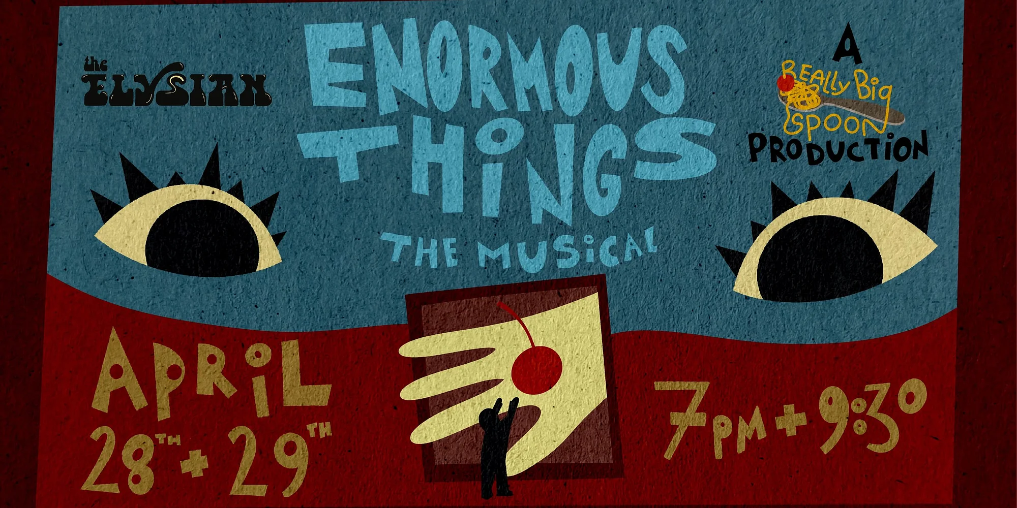 🥄 〰️ 🥄 〰️ 🥄 〰️ Enormous Things an ensemble musical about Claes Oldenburg, the real-life contemporary sculptor of enormous everyday objects, which he made because he was in love with a giant from another realm. But when his window to that realm gets blocked, he go on a journey to meet other famous sculptors of enormous works in order to understand how they are able to get their inspiration back, and learn why each even makes art in the first place. Also Jeff Koons is the villain. He weirds us out. 4/28 @ 7 PM | BUY TICKETS Close Buy Tickets Close 4/28 @ 9:30 PM | BUY TICKETS Close Buy Tickets Close 4/29 @ 7 PM | BUY TICKETS Close Buy Tickets Close 4/29 @ 9:30 PM | BUY TICKETS Close Buy Tickets Close *Doors open 30 minutes before showtime* Seating is general admission and begins 15 mins before showtime. Late seating is at the discretion of individual shows. Lineup subject to change. Tickets are non-transferable. We do NOT honor tickets from third-party sellers. No Refunds.