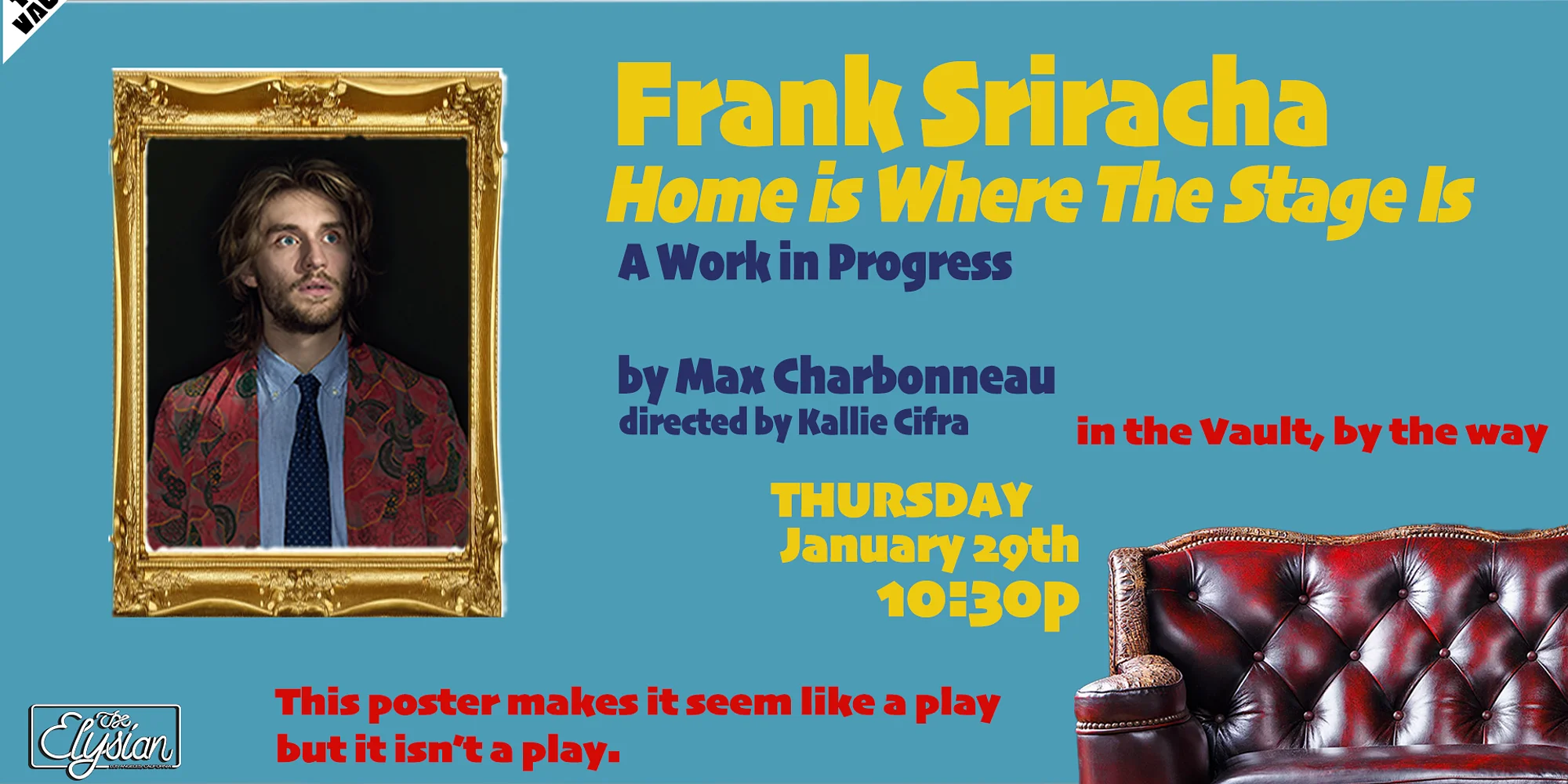 🔥🌶️ 〰️ 🔥🌶️ 〰️ 🔥🌶️ 〰️ $5 | BUY TICKETS Close Buy Tickets Close Frank Sriracha has recorded countless albums in his storied career as the greatest showman in the world, and tonight, he celebrates the release of his 31st. Join Frank for his big speech to kick off his album release party. The speech is five minutes long, and then the rest of the show is a party with a real dinner. Created by Max Charbonneau (@corndudemax). Directed by Kallie Cifra (@kalliecifra). *Doors open at 15 minutes before showtime* -Seating begins 15 minutes before showtime, there is NO LATE SEATING. -Seating is general admission - seats are available on a first come first serve basis, from the front of the theater to the back. If you want to sit closer, be sure to arrive earlier. -Shows start no later than 10 MINUTES after the scheduled show time. -We will have a standby line for sold out shows 30 minutes before doors open. If there are no-shows that create open seats, we will be able to sell additional tickets. -In the event of a sold out show, ticketholders who arrive 30 minutes after show start may lose their seats to the standby line. No refunds. *Lineup subject to change *No item minimum *TICKETS ARE NON-TRANSFERABLE | We do NOT honor tickets through third party sellers.
