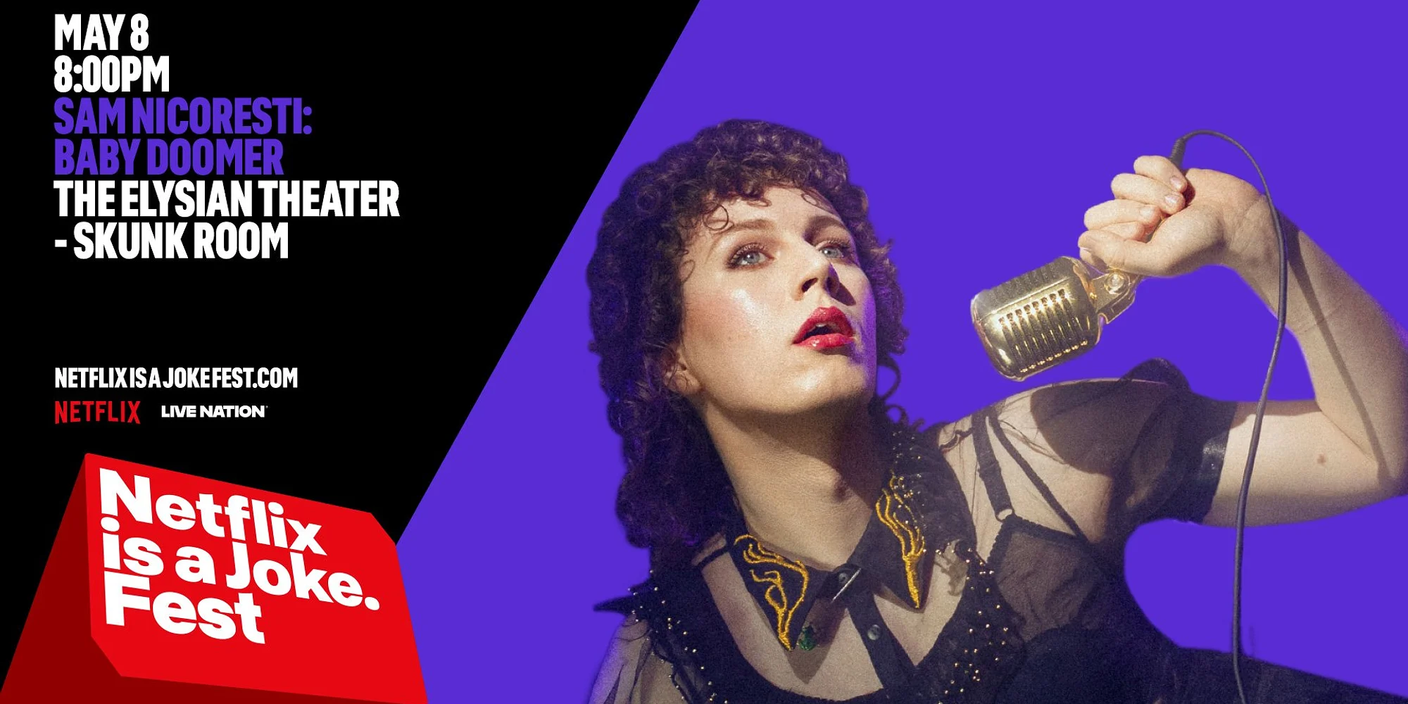 ⭐️ 〰️ ⭐️ 〰️ ⭐️ 〰️ $29.50 | Buy Tickets Close Buy Tickets Close A glistening diamond hour of stand-up from delusional queer icon about love, insanity, and the hunt for the perfect skirt suit. Following a breakout run at this year’s Edinburgh Fringe Festival, Sam brings her critically acclaimed hit Baby Doomer to the Soho Theatre. From a sartorial emergency in a TK Maxx to the standing stones of Cornwall, through the seas of change, clothes and cats, Sam asks the vital question: does the perfect skirt suit even exist? Baby Doomer is the follow-up to the acclaimed Wokeflake, ‘one of the definitive documents of the trans experience in stand-up’ (Chortle). Winner: Best Show Edinburgh Comedy Awards 2025 Nominee: Best Show Leicester Comedy Festival 2025 ‘One of the sharpest, funniest, most exciting hours of comedy at the Fringe.’ ★★★★★ The Telegraph (UK) ‘An ebullient hour with a sky-high joke count.' ★★★★ The Guardian (UK) ‘Uproariously funny, life-affirming, angry, dumb, insightful and political all at once.' ★★★★☆ Chortle (UK) *Doors at 7:00 PM* Seating is general admission - seats are available on a first come first serve basis, from the front of the theater to the back. If you want to sit closer, be sure to arrive earlier. We will have a standby line for sold out shows 30 minutes before doors open. If there are no-shows that create open seats, we will be able to sell additional tickets. In the event of a sold out show, ticketholders who arrive 30 minutes after show start may lose their seats to the standby line. No refunds. *Lineup subject to change* TICKETS ARE NON-TRANSFERABLE | We do NOT honor tickets through third party sellers.