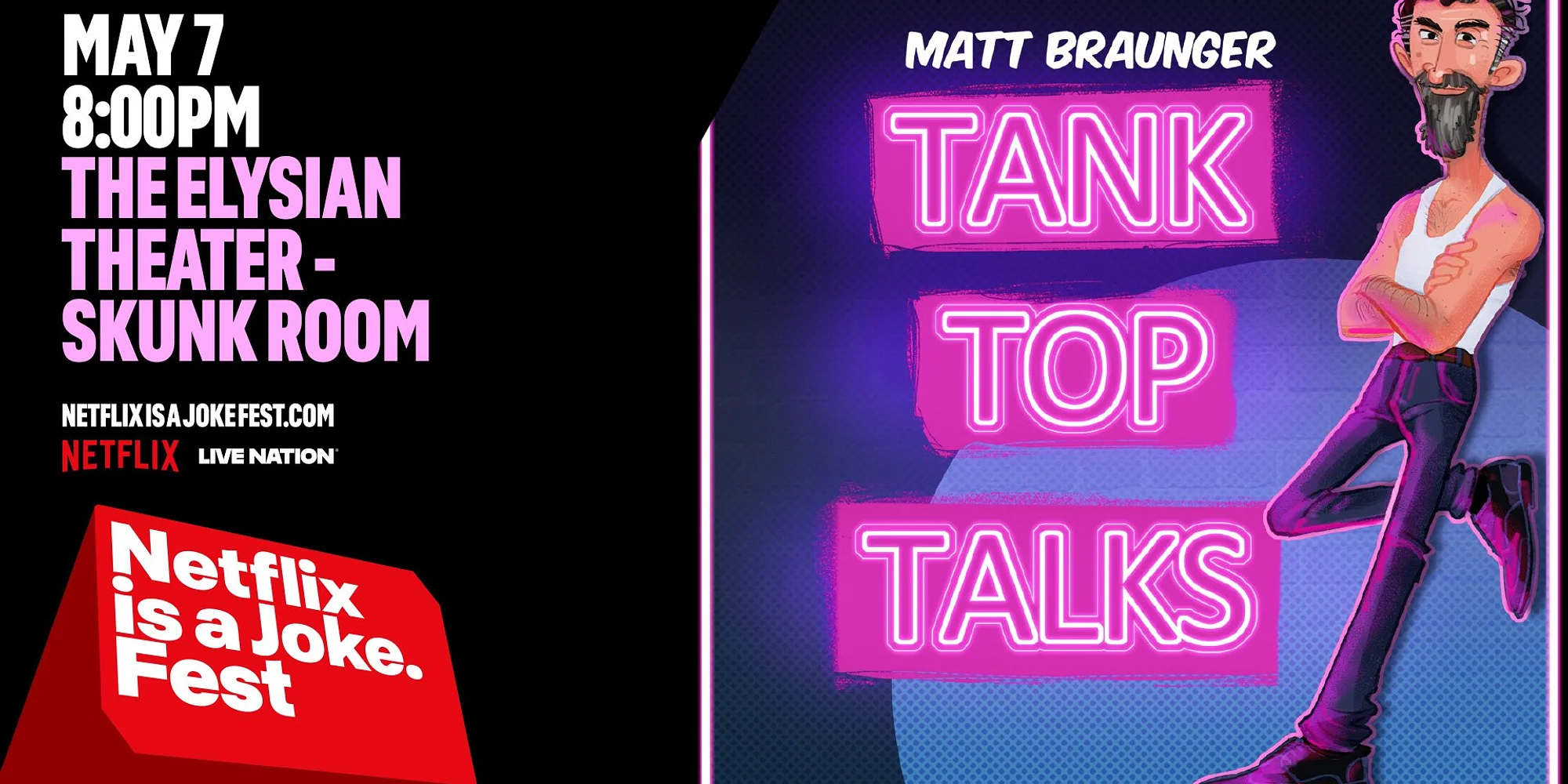 ⭐️ 〰️ ⭐️ 〰️ ⭐️ 〰️ $29.50 | Buy Tickets Close Buy Tickets Close Tank Tops are ridiculous, but they feel good, and the reason they feel good is that they’re ridiculous. Welcome to Tank Top Talks - a weekly conversation podcast where comedian Matt Braunger sits down with comedians, writers, actors, and other luminaries, each of them wearing a tank of their choice. Once Matt and his guest get past the well-earned silliness, the conversation is always worth the listen (or the watch). This event is 16+ *Doors at 7:00 PM* Seating is general admission - seats are available on a first come first serve basis, from the front of the theater to the back. If you want to sit closer, be sure to arrive earlier. We will have a standby line for sold out shows 30 minutes before doors open. If there are no-shows that create open seats, we will be able to sell additional tickets. In the event of a sold out show, ticketholders who arrive 30 minutes after show start may lose their seats to the standby line. No refunds. *Lineup subject to change* TICKETS ARE NON-TRANSFERABLE | We do NOT honor tickets through third party sellers.