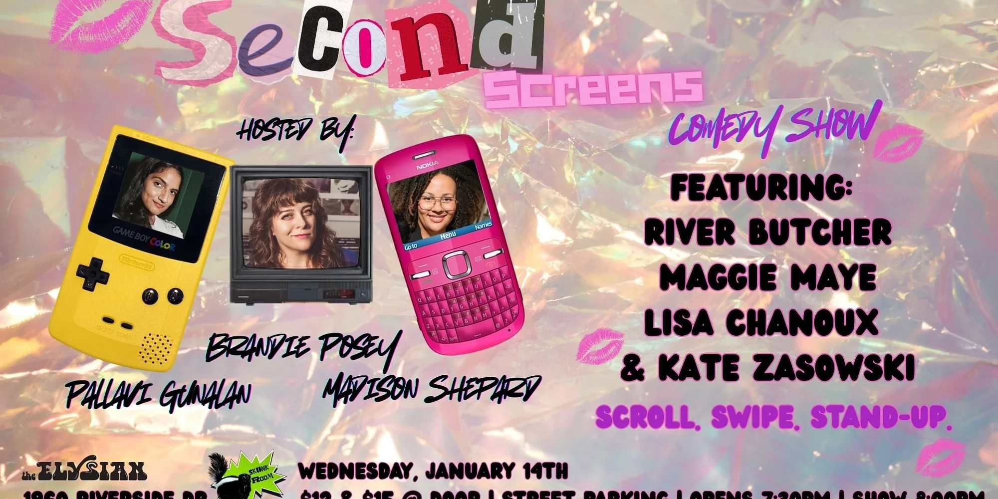 📲 〰️ 📲 〰️ 📲 〰️ $12-15 | BUY TICKETS Close Buy Tickets Close We’re redefining what a live show can be. Instead of asking you to put your phone away, we invite you to use it. Our second-screen format turns comedy into an interactive experience; funny, fast, and built for the way real brains work today. It’s the only show where we actually want you on your phone. Hosts: Pallavi Gunalan - @pallavigunalan - Dropout.tv, Pretty Gay, Crooked Media Madison Shepard - @Madison_shepard - Hulu, Comedy Central, HBO Brandie Posey - @Brandazzle - Warped Tour, Lady to Lady, Burn This Records This Month’s Lineup: Kate Zasowski (@katezasowski) The Culture Awards & Reductress. Lisa Chanoux (@lisachanoux) New York Comedy Festival Comic to Watch & Netflix Is A Joke Radio. Maggie Maye (@magggiemayehaha) Conan & a comedy special “Sweet Enough” on 800lb Gorilla. River Butcher (@rivbutcher) NBC, HBO, Netflix, Conan, Ellen, Good Trouble & Take My Wife. *Doors open 30 minutes before showtime* -Seating begins 15 minutes before showtime, there is NO LATE SEATING. -Seating is general admission - seats are available on a first come first serve basis, from the front of the theater to the back. If you want to sit closer, be sure to arrive earlier. -Shows start no later than 10 MINUTES after the scheduled show time. -We will have a standby line for sold out shows 30 minutes before doors open. If there are no-shows that create open seats, we will be able to sell additional tickets. -In the event of a sold out show, ticketholders who arrive 30 minutes after show start may lose their seats to the standby line. No refunds. *Lineup subject to change *No item minimum *TICKETS ARE NON-TRANSFERABLE | We do NOT honor tickets through third party sellers.