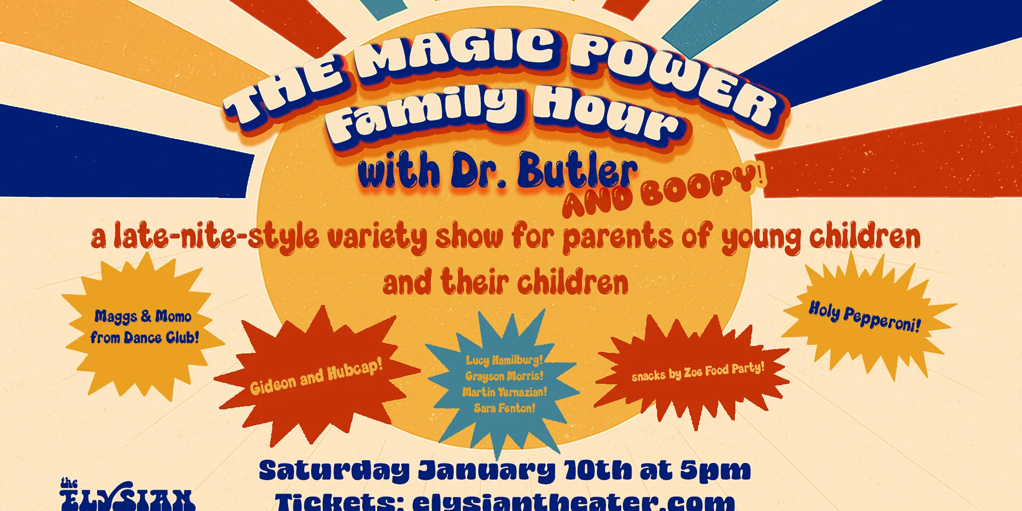 🪄 〰️ 🪄 〰️ 🪄 〰️ $16-25 | BUY TICKETS Close Buy Tickets Close The Magic Power Family Hour is the children’s entertainment extravaganza that you, millennial parent, didn’t know you desperately needed. 5:00 pm on Saturday, that notorious dead zone in the weekend-in-the-life of a parent, transforms into a hilarious, participatory, kid-friendly but parent-savvy spectacle modeled off of your favorite late-nite talk show! Hosted by Dr. Laurel Butler on piano, alongside her beloved sidekick Boopy the irreverent puppet, the Magic Power Family Hour whisks audiences of all ages through a whiz-bang hour of fun, including the Gentle Parenting X Games, the Potty Training Olympic, plus special guest stars, talent showcases, Boopy’s infamous banter, and lots of improv and surprises. Sesame Street meets SNL / Weirdo Night meets Ms. Rachel / Pee-Wee’s Playhouse meets Recess Therapy / Bob Baker Day meets The Tonight Show / you get the idea. Most importantly, parents of young children get an hour of music, comedy, and avant-pop entertainment specially crafted to be developmentally appropriate for little kiddos, culturally relevant for parents, and hilarious for both. Come to the Magic Power Family Hour, where 5pm is the new late-nite. Featuring: Ewen Wright (Boopy) Gideon Irving & Nate Sloan (Gideon and Hubcap) Anj & Hannah-Rose Sunday (Holy Pepperoni) Maggie & Momo Gonzales (Dance Club) Zoe Komarin (Zoe Food Party) Sara Fenton Lucy Hamilburg Grayson Morris Sam Jay Gold Julia Metzger-Traber and special guests! Dr. Laurel Butler has a Master’s in Theatre Education, a Doctorate in Educational Leadership for Social Justice, and an almost-four-year-old, which qualifies her to do literally anything. Her award-winning performance projects - including PostMan, Sharon is Karen, ACT TWO, Cassandra the Band, September the Show, Lady Stardust, Wild Beasts Sleep in my Forest, and The Great Negocio - have played at festivals and stages throughout this ostensible “nation,” though she is proudest of her decade+ with the Royal Frog Ballet’s Surrealist Cabaret which mostly took place in mud puddles and asparagus patches. Her brain work as nerdy nerd professor smarty pants has been presented at numerous conferences and in academic journals like Johns Hopkins University Press’s Theatre Topics, where her thesis on clown pedagogy was published like over a decade before that was a cool thing to say. She is the Artistic Director of the Magic Power Family Hour, the co-founder and co-teacher of the Clown Sandbox workshop series for kids at the Lyric Hyperion Theater, and tragically often has to work real professional grownup jobs too. Gross! laurelbutler.com *Doors open 30 minutes before showtime* -Seating begins 15 minutes before showtime, there is NO LATE SEATING. -Seating is general admission - seats are available on a first come first serve basis, from the front of the theater to the back. If you want to sit closer, be sure to arrive earlier. -Shows start ...