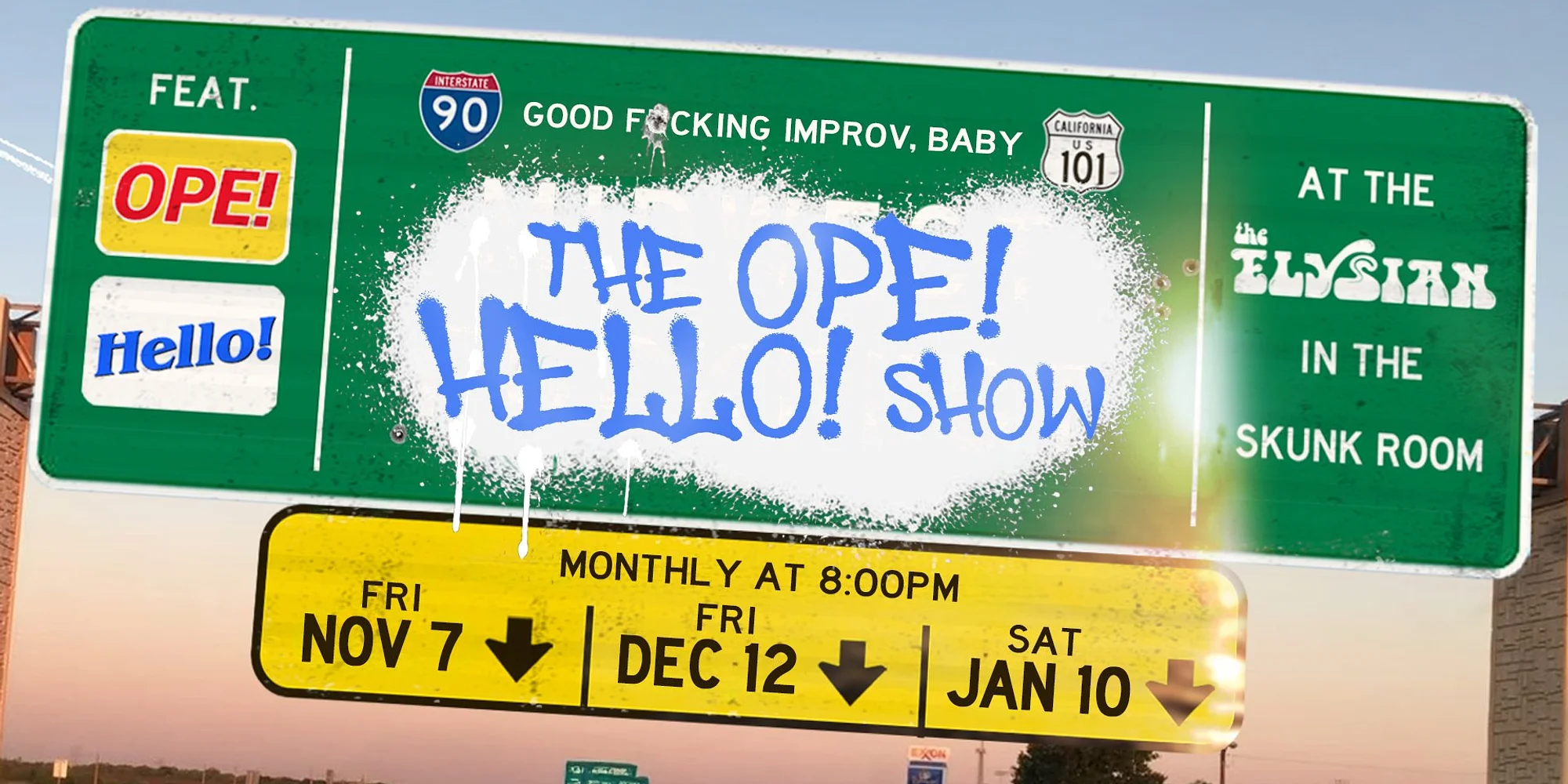 🤠 〰️ 🤠 〰️ 🤠 〰️ $10-12 | Buy Tickets Close Buy Tickets Close Get ready for a fast-paced hour of unscripted hilarity as two powerhouse improv teams—Ope! and Hello!—take the stage! These quick-witted performers will create characters, scenes, and stories on the spot, all inspired by your suggestions. Hello! features a dynamic cast of comedy all-stars: Becca Barish, Brendan Dowling, Colleen Doyle, Nnamdi Nngwe, Olivia Nielsen, Sean Coyle, and Tyler Davis. Ope! brings its signature Midwestern charm and fast, funny scene work with performers Jordan Lee Cohen, Andrew Knox, Alan Linic, Waleed Mansour, Katie Kershaw, and George C. Owens. Follow Them Below! Becca Barish (@becca_barish), Brendan Dowling (@berndandooling), Colleen Doyle (@garycomedyshow), Nnamdi Nngwe (@nngwe17), Olivia Nielsen (@ughlivia), Sean Coyle (@sean_coyle17), Tyler Davis (@tyleradav), Jordan Lee Cohen (@jordanleecohen), Andrew Knox (@softknox), Alan Linic (@alanlinic), Waleed Mansour (@mr.waleedmansour), George C. Owens (@george_c_owens) *Doors open 30 minutes before showtime* -Seating begins 15 minutes before showtime, there is NO LATE SEATING. -Seating is general admission - seats are available on a first come first serve basis, from the front of the theater to the back. If you want to sit closer, be sure to arrive earlier. -Shows start no later than 10 MINUTES after the scheduled show time. -We will have a standby line for sold out shows 30 minutes before doors open. If there are no-shows that create open seats, we will be able to sell additional tickets. -In the event of a sold out show, ticketholders who arrive 30 minutes after show start may lose their seats to the standby line. No refunds. *Lineup subject to change *No item minimum *TICKETS ARE NON-TRANSFERABLE | We do NOT honor tickets through third party sellers.