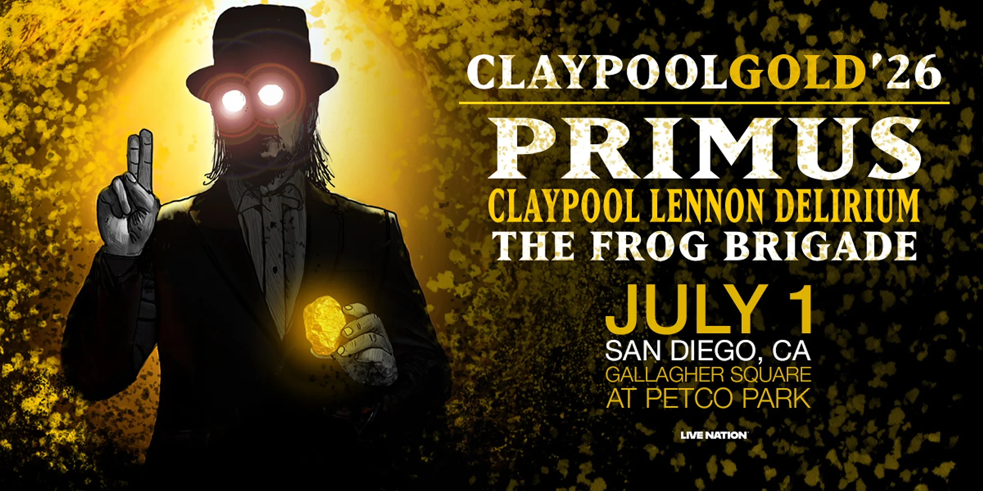 Claypool Gold featuring Primus, Claypool Lennon Delirium, and the Frog Brigade, are coming to Gallagher Square at Petco Park on Wednesday, July 1!