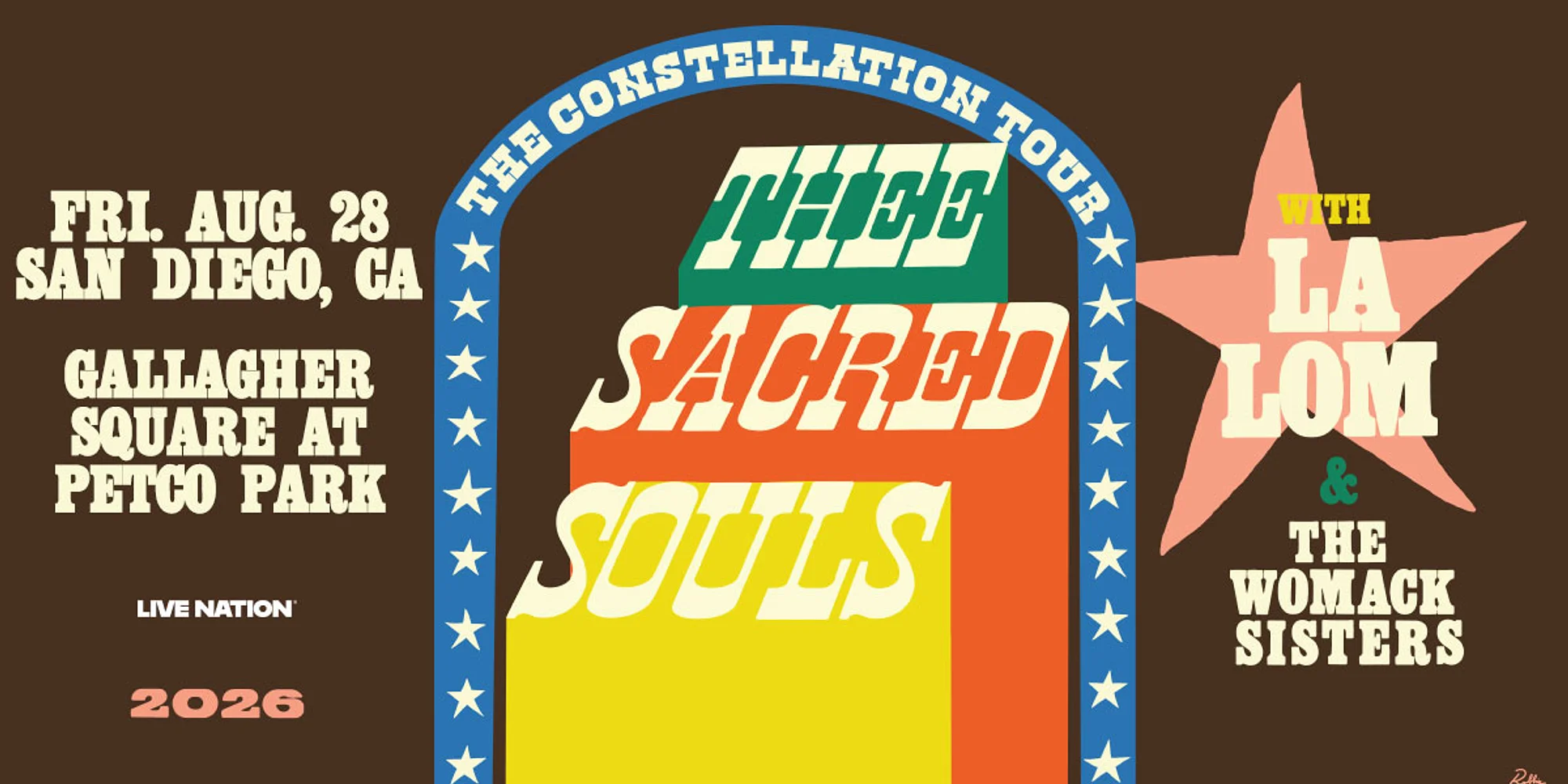 Thee Sacred Souls, with support from LA LOM and the Womack Sisters, are coming to Gallagher Square at Petco Park on Friday, August 28! Tickets go on sale to the general public on Friday, February 20 at 10 AM PT.