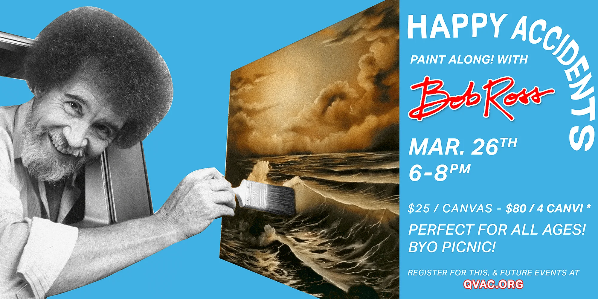 $25 a canvas | $80 for 4 canvases Unleash your creativity in a relaxing, step-by-step painting session inspired by the iconic Bob Ross. This guided event is designed for all ages and skill levels—no experience needed! All materials are included with your purchase. Family-friendly and open to everyone. Create your own landscape masterpiece to take home. Enjoy a fun, stress-free evening filled with painting, positivity, and happy little trees. Just show up, follow along, and let the joy of painting take over!