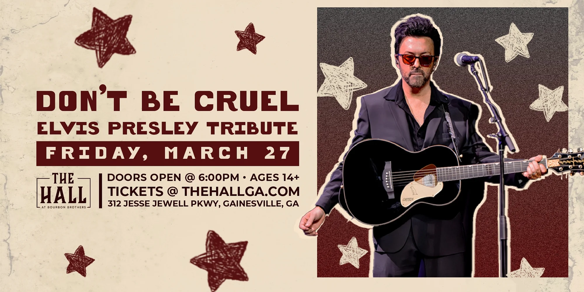 Get ready for a night of unforgettable music with Don’t Be Cruel: An Elvis Tribute Show! Relive all the hits that made the King of Rock and Roll a legend—from the rebellious energy of Hound Dog and the rockabilly fun of Blue Suede Shoes, to the soulful romance of Can’t Help Falling in Love and Love Me Tender. We’ll shake it up with Jailhouse Rock, groove to All Shook Up, feel the emotion of Suspicious Minds, and rock out to Burning Love. Sing, dance, and experience the magic of Elvis like never before—this is a show you won’t want to miss!