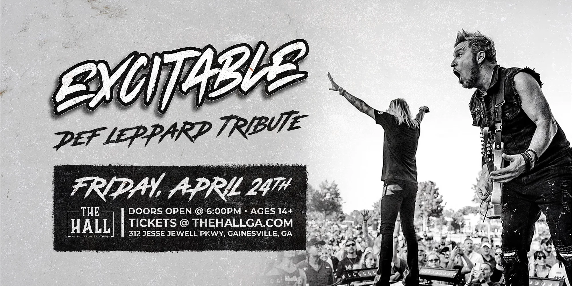 DOORS @ 6:00 PM | SHOW @ 7:30 PM Get ready to pour some sugar on your night out—Excitable is bringing the electrifying energy of Def Leppard to the stage for one unforgettable evening. Experience the iconic sound, soaring vocals, and high-octane performance that defined a generation of rock. From anthems like “Photograph”, “Hysteria”, and “Rock of Ages” to the thunderous power of “Pour Some Sugar on Me”, Excitable recreates the legendary Def Leppard concert experience down to the last power chord and leather-clad swagger. Whether you’re a lifelong fan or discovering these rock legends for the first time, this tribute show delivers the perfect mix of nostalgia and high-energy entertainment. Don’t miss your chance to relive the glory days of arena rock.