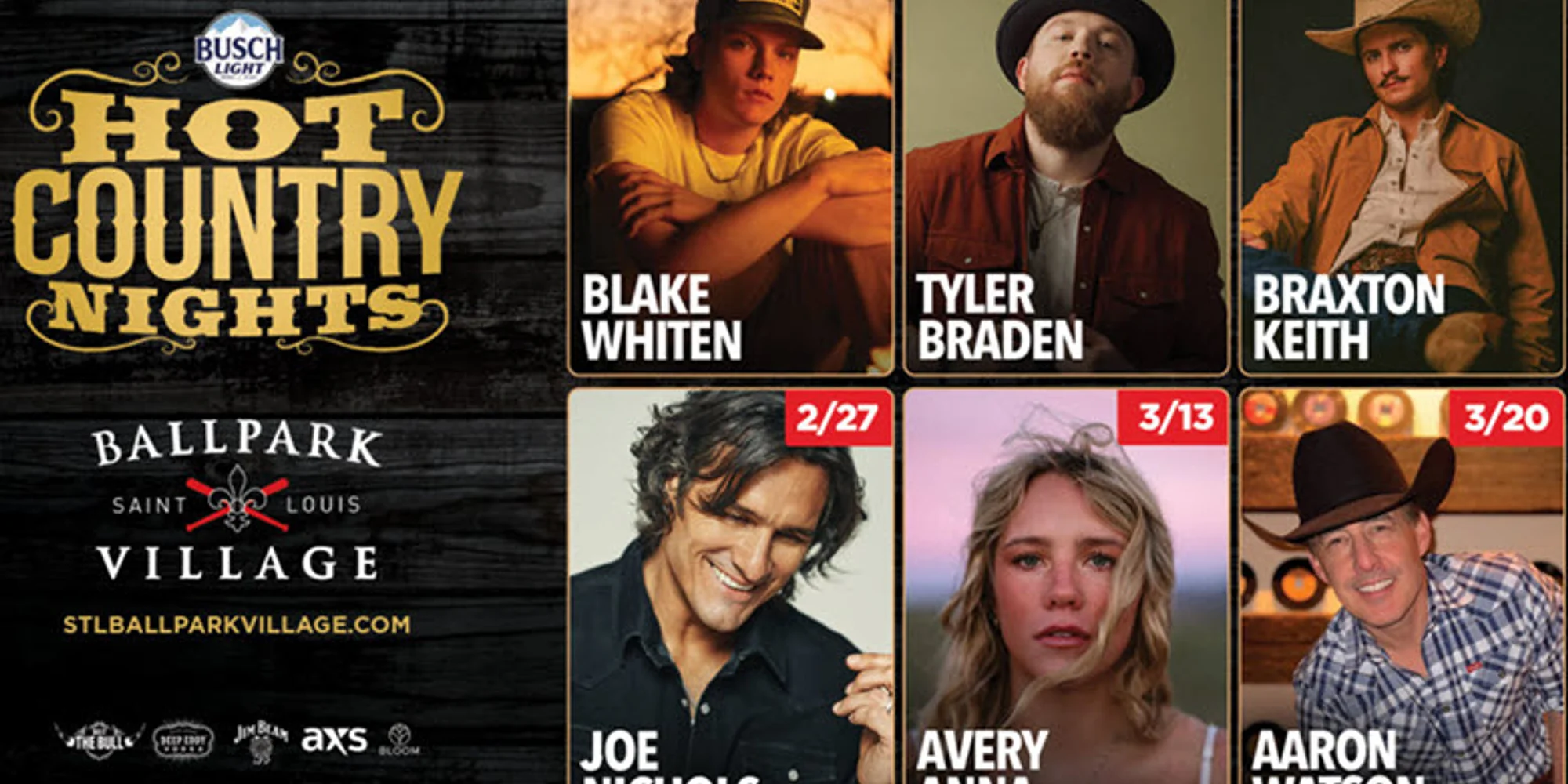 Join us for Busch Light Hot Country Nights with 93.7 The Bull! Rock out to country favorites every Friday. Friday, January 30 - Blake Whiten Friday, February 6 – Tyler Braden Friday, February 13 – Braxton Keith Friday, February 27 – Joe Nichols Friday, March 13 – Avery Anna Friday, March 20 – Aaron Watson