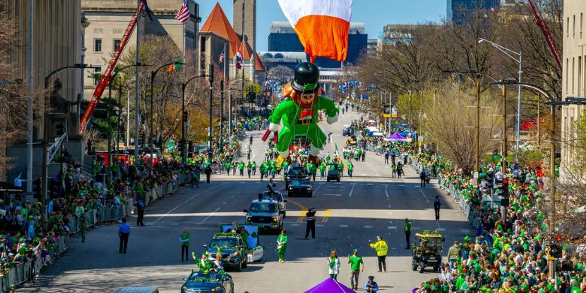 The 57th annual St. Patrick’s Day Parade will take place on Saturday, March 14, 2026, at 12:00 PM in downtown St. Louis. The parade always takes place “rain or shine.” It begins at 8th and Market streets, and proceed west to its conclusion at 22nd and Market streets. Visit the Parade Route page for additional route details. Regularly noted as one of the top in the country, the parade is comprised of over 120 units, including marching bands, floats, huge cartoon-character balloons, 5000+ marchers, and lots of clowns. Over 250,000 spectators regularly attend, the largest of any event in downtown St. Louis, packing the streets with smiling Irish eyes and festive green attire.