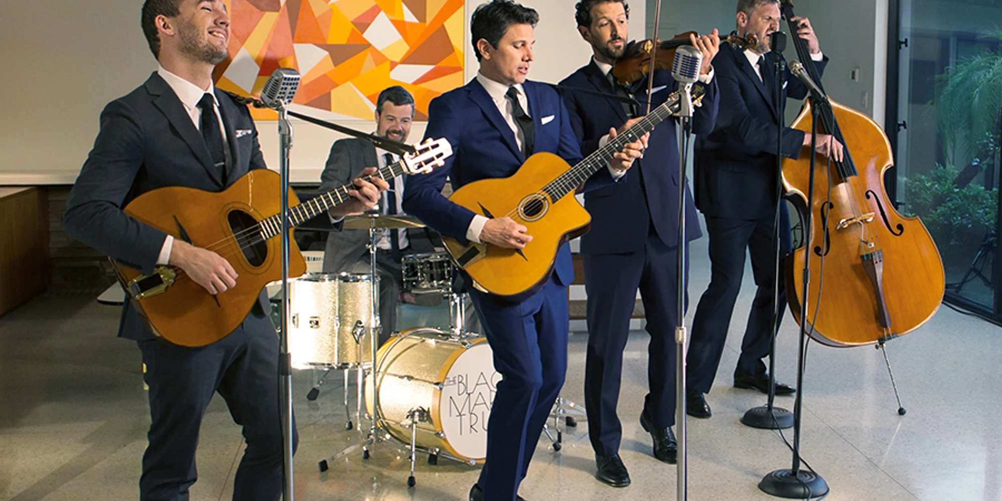 Sit back, relax, and enjoy the sounds of award-winning musicians as they perform live as part of the Festival of Arts Concerts on the Green series. Groove to the sounds of these living legends in a casual outdoor gallery setting that offers a memorable and unique concert experience unmatched in Southern California. The Festival of Arts continues to build on its nationally and critically acclaimed reputation as one of the finest outdoor art venues. Performer: The Black Market Trust The Black Market Trust are an American Traditional Pop/Vocal Jazz group from Los Angeles who combine the sounds of the legendary American crooners and vocal groups with the fire and energy of Gypsy Jazz guitarist Django Reinhardt. Consisting of five world class musicians who have traveled the globe recording and performing on the world’s biggest stages and with music’s most renowned artists, The Black Market Trust capitalize on their experience and pedigree to deliver a high energy, crowd pleasing performance filled with some of the best songs ever written. The live show features material from The Great American Songbook infused with Django’s romantic and virtuosic flavor. Add some intricate vocal harmonies, a dash of Rat Pack-style comedy and it’s clear to audiences why The Black Market Trust have quickly earned a reputation as one of the premier live acts performing in music today. Be transported as they meld two distinctly different vibes- one of a gypsy campfire, the other a slick metropolitan nightclub- into a cohesive, stylish sound. Connect with The Black Market Trust Reserve a Seat! Guaranteed seating is available by purchasing a ticket in the reserved section (“Nightclub” VIP seating). This ticket includes admission to the Festival of Arts Fine Art Show and the concert. Reservations must be made prior to 10:30am the day of the performance. Limited free seating is available for each concert. RESERVE NOW