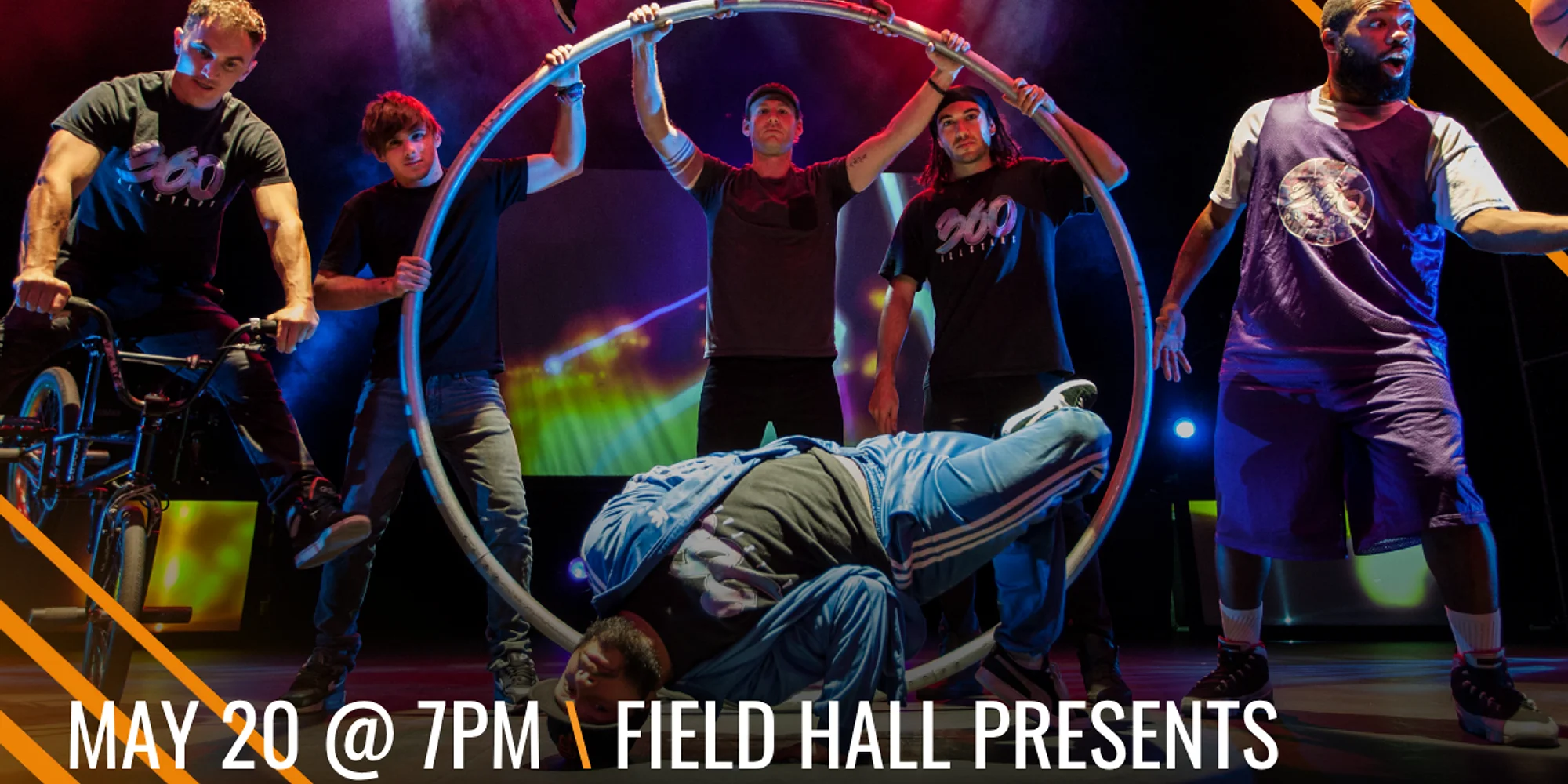 Field Hall Presents: 360 ALLSTARS Wednesday, May 20th @ 7PM | Donna M. Morris Theater *Tickets $28-55 | Financial assistance available – click here to apply *Our ticketing platform Ludus charges a 5% service fee for all card transactions. To avoid this fee, visit our Box Office at 201 W. Front Street and pay via cash or check. Hours: Monday-Saturday 10AM-2PM. 360 ALLSTARS is a supercharged urban circus that explodes with energy! Featuring a stellar cast of World Champions, record-holding athletes, and award-winning artists, this electrifying production fuses BMX, basketball freestyle, breakdancing, beatboxing, acrobatics, and drumming into a dizzying celebration of street culture. SOLD OUT ON BROADWAY SOLD OUT IN EDINBURG SOLD OUT AT THE SYDNEY OPERA HOUSE SEEN BY OVER 1MILLION PEOPLE WORLDWIDE BMX, basketball, breakdancing, acrobatics, drumming and more, the international smash hit returns! A phenomenal physical performance exploring all forms of rotation, 360 ALLSTARS connects the street with the elite to deliver a supercharged urban circus. Boasting a stellar cast of World Champion and World Record holding artists and athletes, 360 ALLSTARS is a spectacular fusion of the extraordinary artists and athletes, 360 ALLSTARS is a spectacular fusion of the extraordinary artistry that emerges from street culture. Add to this a stunning live soundtrack delivered by award winning musicians, coupled with spectacular video projections, 360 ALLSTARS is as aurally exciting as it is visually astounding. A magnificent, colorful and astonishing expression of a generation that has reinvented the circus, 360 ALLSTARS is a revolutionary production that will leave you dizzy with excitement! Don’t miss your chance to catch 360 ALLSTARS at Field Arts & Events Hall as part of their 10 year anniversary world tour. CLICK HERE FOR TICKETS