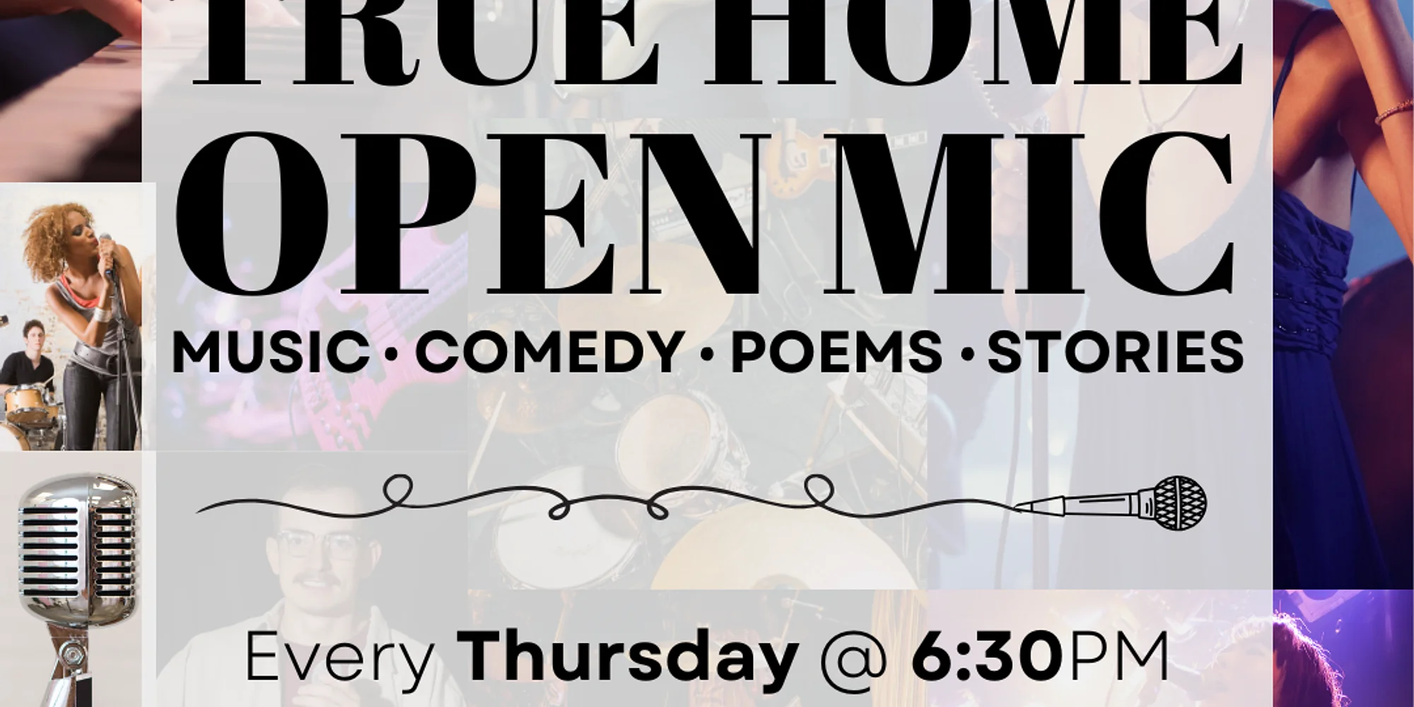 Join us every Thursday from 6:30pm – 8:30pm for music, poetry, comedy and stories performed by our favorite local artists! Feel free to bring your own food/drinks or anything you’d like to share! Supportive listening room in an art gallery setting. Sign up begins at 6pm, show begins at 6:30pm. Each performer will have twelve minutes, and the show is always livestreamed on our Facebook account.