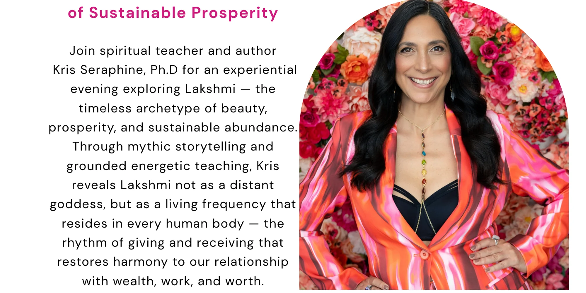 We start the evening with a 60 minute all-levels yoga class, followed by an educational talk with spiritual teacher and author Kris Seraphine, Ph.D for an experiential evening exploring Lakshmi — the timeless archetype of beauty, prosperity, and sustainable abundance. Through mythic storytelling and grounded energetic teaching, Kris reveals Lakshmi not as a distant goddess, but as a living frequency that resides in every human body —the rhythm of giving and receiving that restores harmony to our lives REGISTER HERE: https://SBFlowYoga.as.me/?appointmentType=91695563