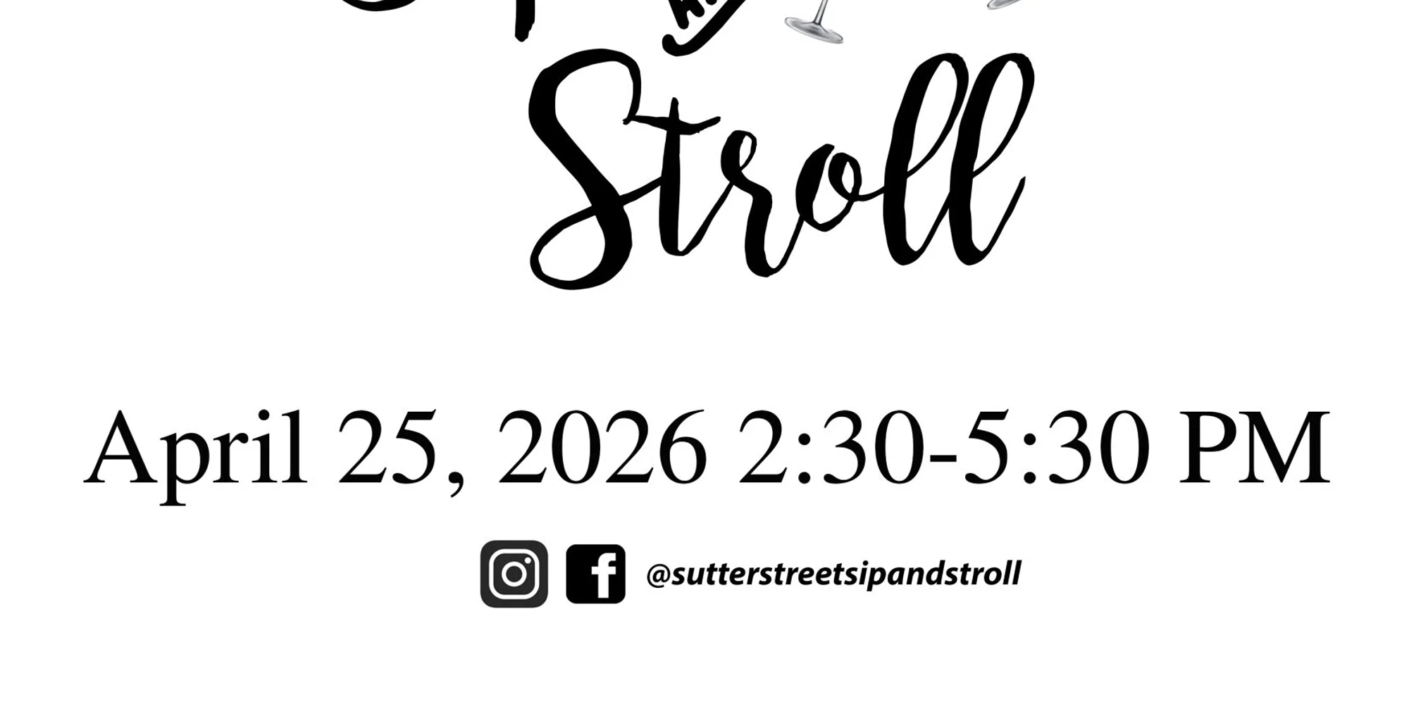 🍷 Sutter Street Sip & Stroll – Historic Folsom 📅 Saturday, April 25, 2026 | 🕝 2:30 PM – 5:30 PM 📍 Sutter Street, Historic Folsom, CA Get ready to sip, stroll, and savor the charm of Historic Folsom’s annual Sip & Stroll! Wander down Sutter Street while tasting curated wines from regional wineries at over 20+ tasting stops, enjoy delicious bites from local restaurants, and listen to live music on every block. Attendees receive a commemorative wine glass and a map to all participating venues — it’s the perfect spring afternoon with friends. Last year’s event sold out as guests explored the historic district, shopped local boutiques, and soaked up the vibrant community atmosphere. 21+ only — rain or shine! 🎟️ Tickets: 6-ticket limit Advance purchase recommended — they sell quickly! Ticket sales begin 3/1 at noon. 🍷 Includes: Wine tastings, food samples, live music & souvenir glass 🍽️ Tips: Arrive early for lunch and stay after for dinner in Historic Folsom Please note: there is a 6-ticket Limit. Buy Tickets Now! Sponsorship Opportunities now open – Sip and Stroll Sponsor Packet