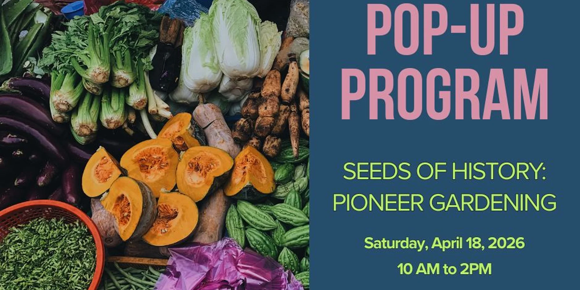 Outside Fort Misery and Schoolhouse Gardening was a very important skill for pioneers, and it still is for many people today. Families grew vegetables, herbs, and fruits to feed themselves. When it came time for harvest, they put all hands to work to gather the produce. They found clever ways to preserve the harvest to sustain them throughout the winter. At this Pop-Up, learn what it takes to grow your own vegetable and take one home with you! All Pop-Up Program materials are included with General Admission. Pop-Up activities are included with General Admission and while supplies last.