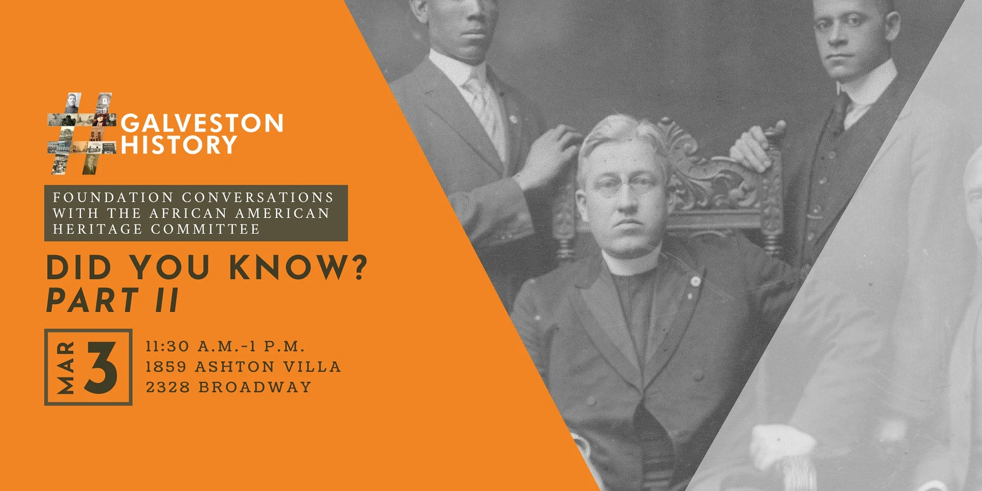 A continuation of their successful presentation in 2024, members of GHF’s African American Heritage Committe shares a new line-up of little-known facts about Galveston’s African American Community. Galveston Historical Foundation’s African American Heritage Committee (AAHC) was established in 2002 at the 1859 Ashton Villa, when more than forty community members gathered with a shared passion for preserving the island’s Black history. Leading the charge was Maggie Williams—a Galveston native and retired schoolteacher—who was elected the committee’s first chair. Since its founding, this committee has dedicated itself to identifying, commemorating, and preserving historic sites important to African Americans and the Galveston community.