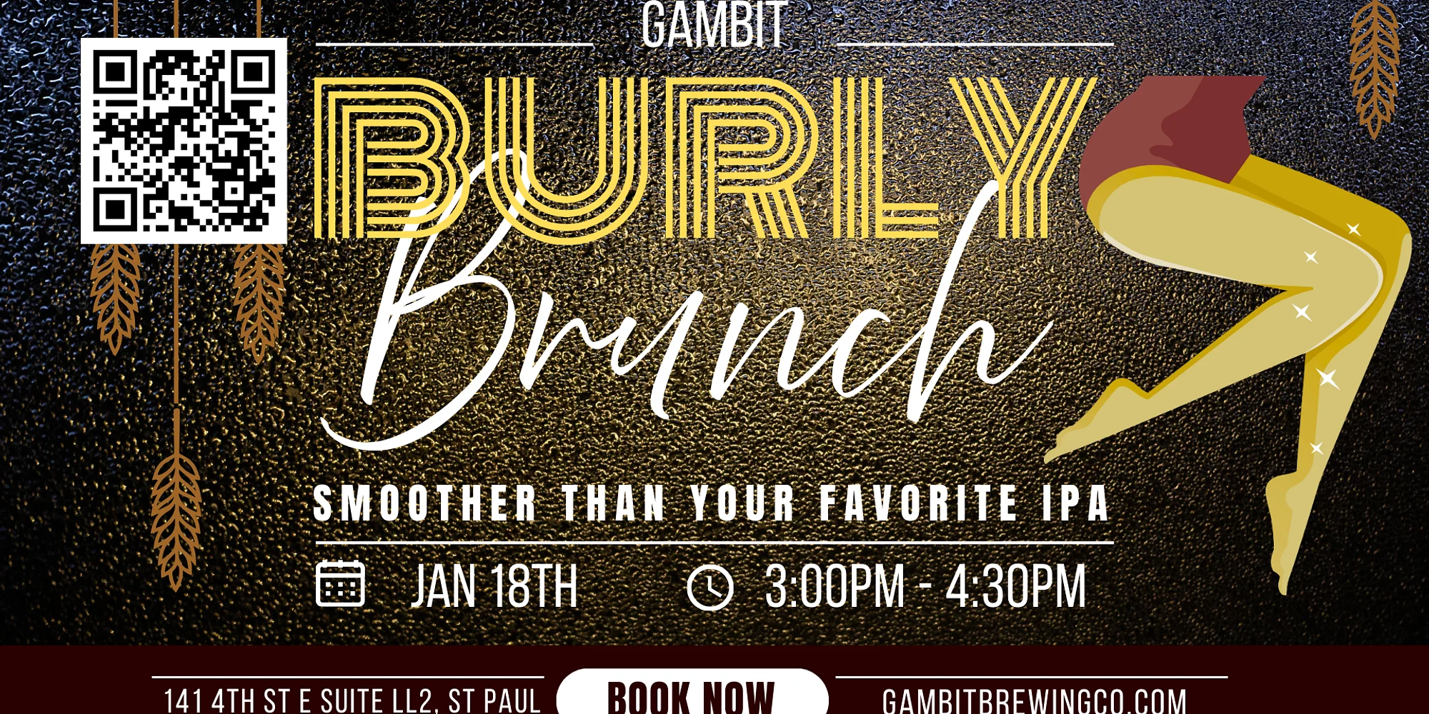 Get your tickets here! Burly Brunch at Gambit Brewing Co is a perfectly poured blend of flirty, frothy fun with tassels on tap. Expect sudsy seduction, creamy curves, and just the right amount of foam and flirtation. So grab a pint, tip your bartender, and prepare for a show so smooth it goes down easier than your favorite IPA.