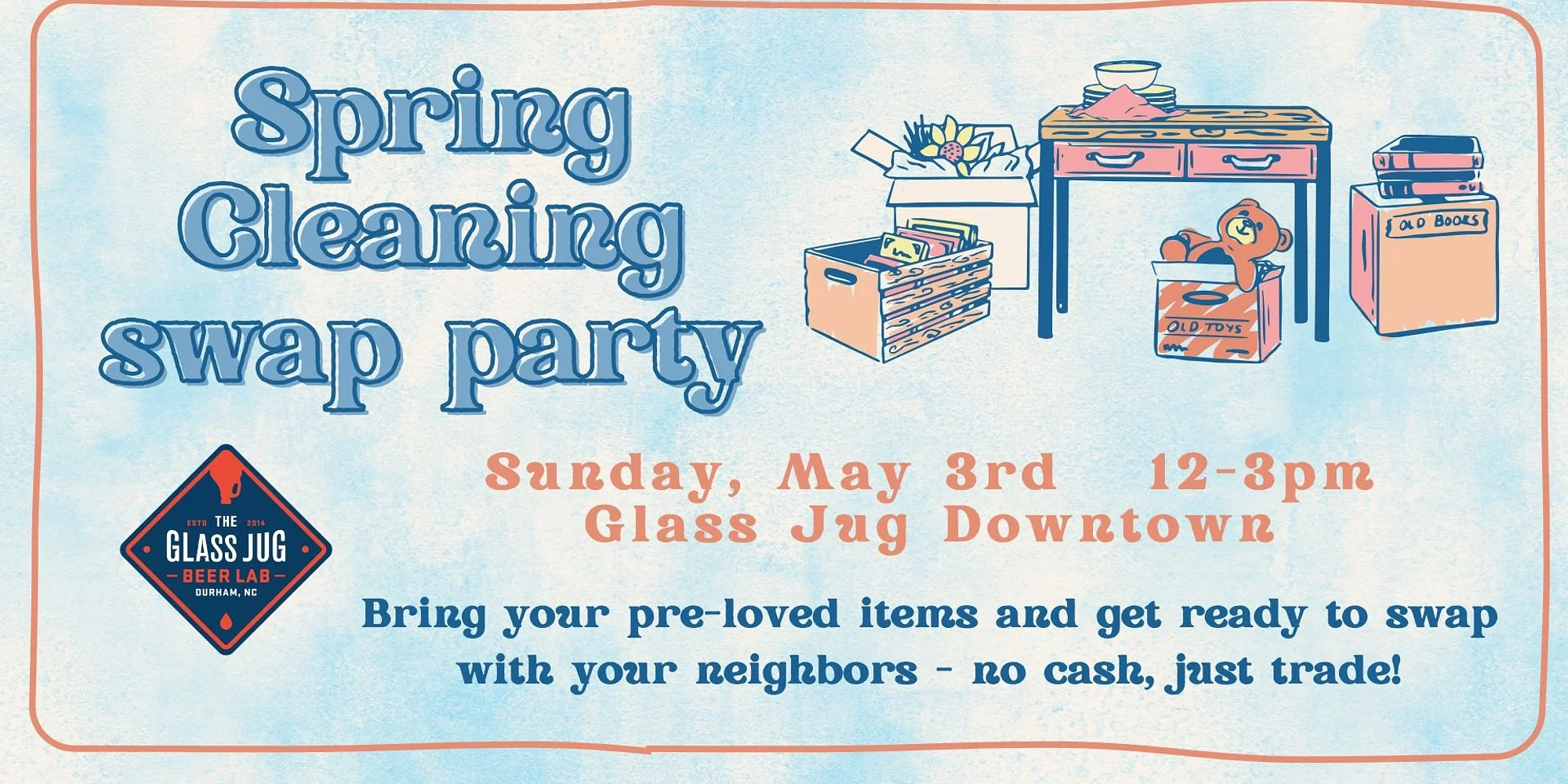 Spring cleaning usually feels like a chore, but here at Glass Jug Downtown, we’re turning it into a party! It’s time to clear out those "closets of chaos" and trade your gently used treasures for something fresh - all while enjoying our cold beverages. The rules are simple: Bring the quality condition stuff you no longer need and find something "new-to-you", pint in hand. What you can exchange: * Indoor Plants & Supplies: Cuttings, pots, or that succulent you can’t seem to kill. * Home Goods: Kitchen gadgets, decor, etc. * Games & Toys: Fun for the kids and the kids-at-heart (board games, puzzles, toys...) * Accessories: Sparkle up with jewelry, belts, or bags. NOTE: To keep things manageable, we are strictly NOT accepting clothing at this swap. Save the sweaters for the fall! So browse the swap tables with one of our award-winning beer lab experiments, a crisp cocktail, or a refreshing NA beverage, to name just a few options. Let's toast to a clutter-free spring! View on Facebook.