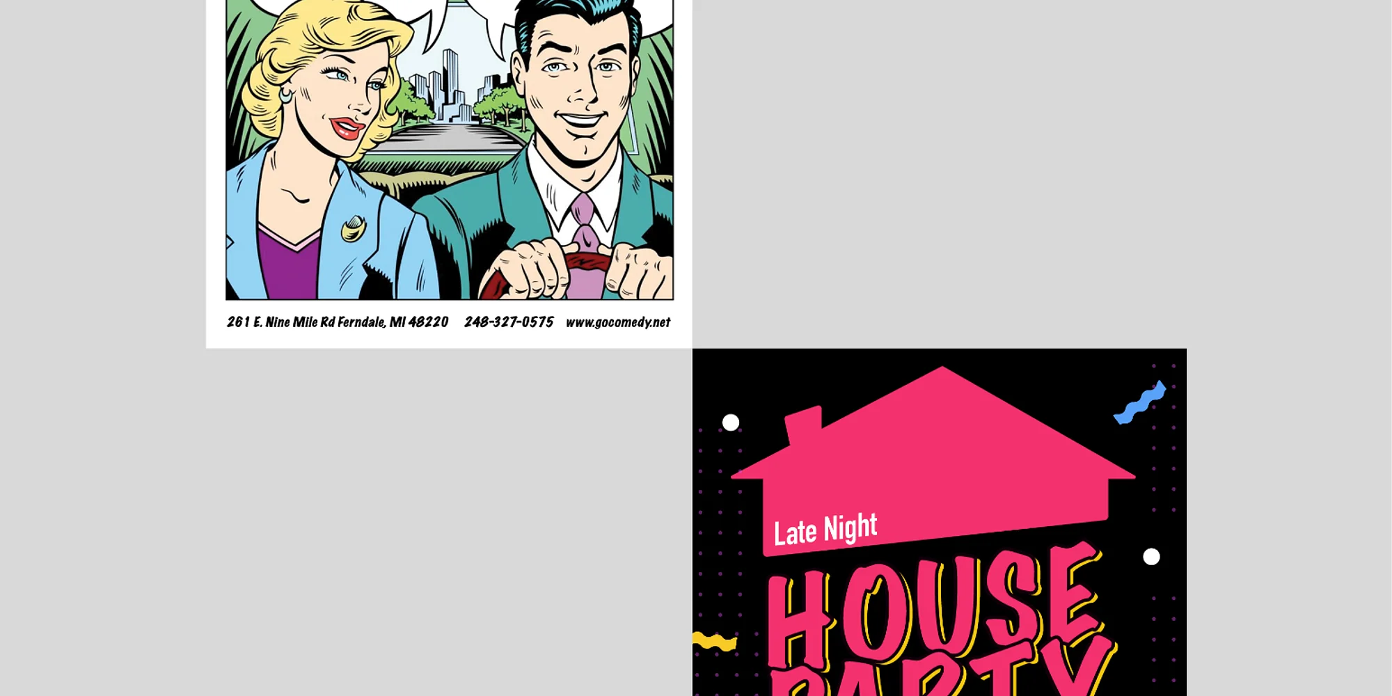 Date Night An Improvised comedy about romance. Come explore the depths of relationships through the improvised past, present, and futures of a matched pair. Will they meet cute and burn brightly, or fizzle out and fade away? Buy Tickets! to Date Night Late Night House Party A looser, bolder improvised show. Late Night House Party is a great hang with Michigan’s top improv comedians. It combines short-form game-style improv with totally improvised scene work based on your suggestions. This show is loose, the vibes are edgy, and the drinks are flowing. Recommended for adult audiences. Buy Tickets! to the Late Night House Party GENERAL INFORMATION Pre-purchasing your tickets for shows is highly suggested. We recommend you arrive at least 15 minutes before showtime. Drink service is at your table throughout the show. SEATING Please choose your seat online. There will be ushers on staff to assist in finding your seat. We have limited seating and there may be more than one party per table GROUP DISCOUNT If you purchase 12 or more tickets at once, a 10% discount will be automatically applied to your order. Please let us know if you experience any issues with this discount. PAYMENT Forms of payment accepted at the box office: CASH, VISA/MASTERCARD, AMERICAN EXPRESS, DISCOVER PARKING Free Parking is available in our lot and the Courthouse next door after 5 pm. Metered Parking is available on 9 Mile and in a lot across the street. The meter expires at 9 pm and is free on Sundays. OTHER Attendees uderstand that there is an inherent risk f exposure to COVID-19 in any public place where people are present. Those purchasing or attending Go Comedy! Improv Theater events voluntarily assume all risks related to exposure to COVID-19.