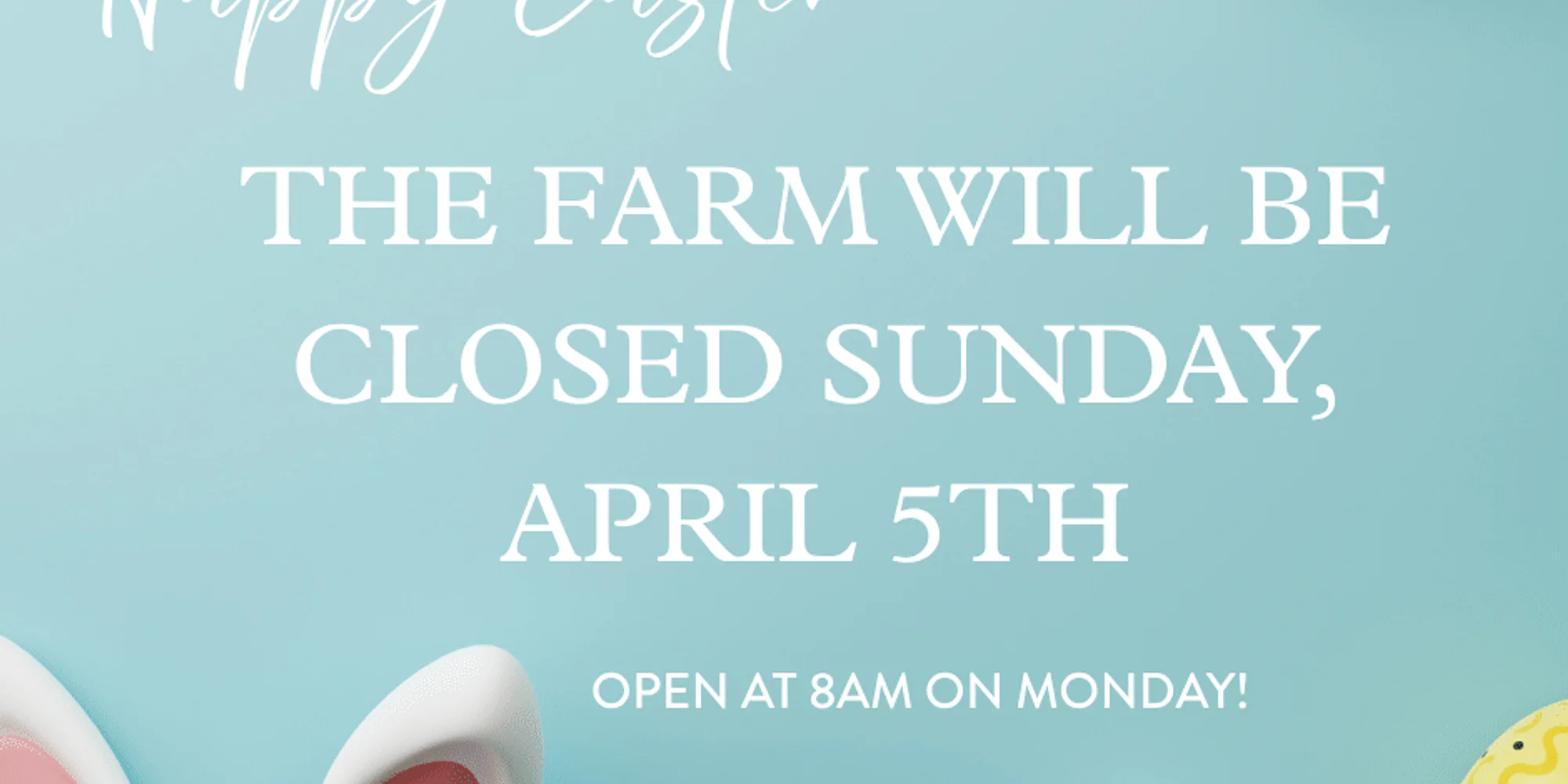 In honor of the holiday, the farm will be closed on Sunday, April 5th. The market and garden center will reopen at 8am on Monday, April 6th.