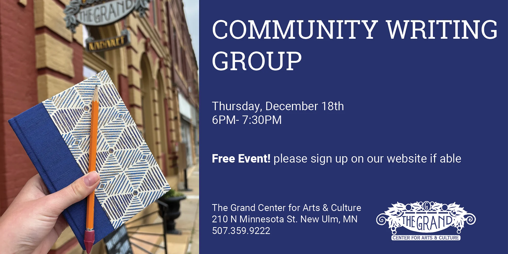 Our Community Writing Group, is collaborative space for writers of all skill levels to come together, share their stories, and grow as creators. Whether you’re an experienced author, an aspiring novelist, or someone just starting to explore the world of writing, this group offers a welcoming environment to inspire and challenge one another. Here, we believe in the power of words and the magic of storytelling. Our goal is to provide a supportive community where writers can: Share and receive constructive feedback on their work. Support each other’s growth, offering advice, tips, and encouragement. Create lasting relationships with fellow writers who share a passion for creativity. Whether you’re writing poetry, short stories, novels, or essays, this group is about nurturing creativity, learning from each other, and celebrating the art of writing in all its forms. Come join us and be part of a community where your words matter! *Located in the Arts Education space on our second floor *registration is free, but encouraged. To register, “purchase” a free ticket for the event on our website.