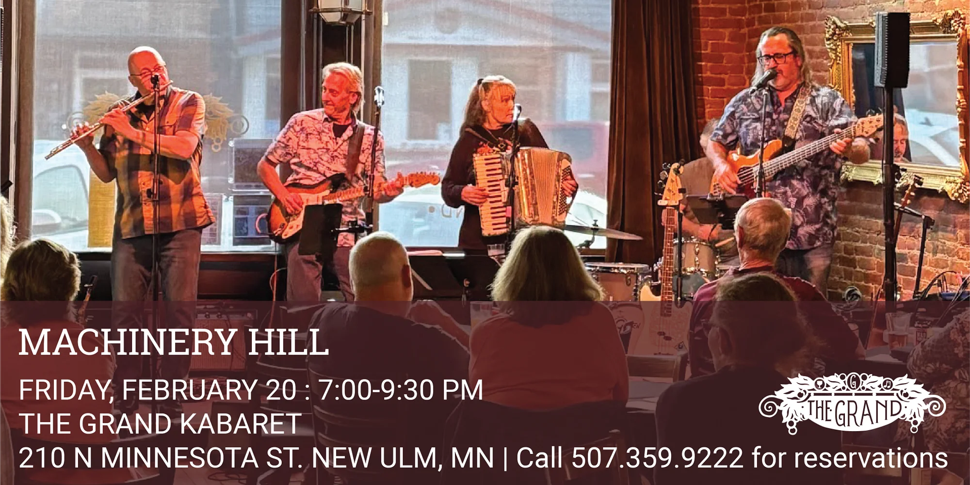 Americana with Rock, Ska, Blues, Rockabilly, Irish and touches of irony. Machinery Hill features a variety of songwriters who delve into topics from building combines to the end of the world, all solidly delivered with an upbeat attitude. The Machinery Hill Band is based in the Twin Cities. The band has been performing since 1985. They are still trying to get it right! Having performed with such acts as Beausoleil, Buckwheat Zydeco, Frente, Phish, Black 47, Brave Combo, Eugene Chadbourne, Jimmy Carl Black and Queen Ida; they’ve also played The Great River Folk Festival, among others.