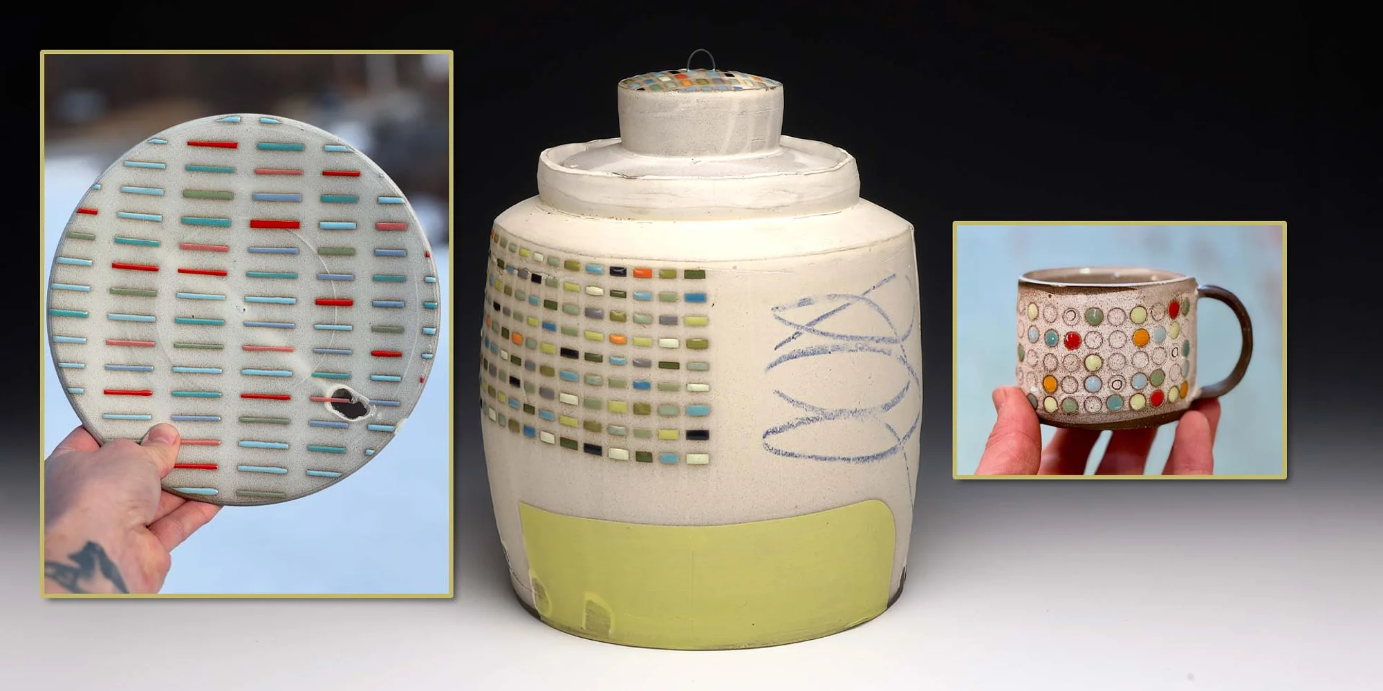 In this course we will explore the design and use of paper templates to construct pottery forms from slabs. Cups, mugs, vases, and jar forms will be areas of focus and we will also explore various surface decoration techniques including terra sigilatta, vinyl stencil fabrication, glazing, and other finishing options. Students will practice the process of making and handling of slabs, and constructing successful pottery forms with handbuilding techniques. Work will be bisque-fired at the end of class. Prerequisite: Foundational ceramics experience requested. Students are asked to bring the following supplies Any standard studio tools that you already have and use. Xacto knife Scissors Rulers Shaping ribs Texture tools Sketchbook Small rollers or brayers Black underglaze pencils Your supply fee and studio access will cover the following 15 lbs of OM4 ball clay 2 x 2-foot piece of sheet rock, taped on the edges with duct tape Two per student Assortment of underglazes Masking tape Duct tape Boards for works in progress Roofing felt Spool of twine or kitchen string Push Pins Pack yellow pencils Scissors, heavy duty enough to cut tar paper or cardstock Chalk Banding Wheels Rolling pins
