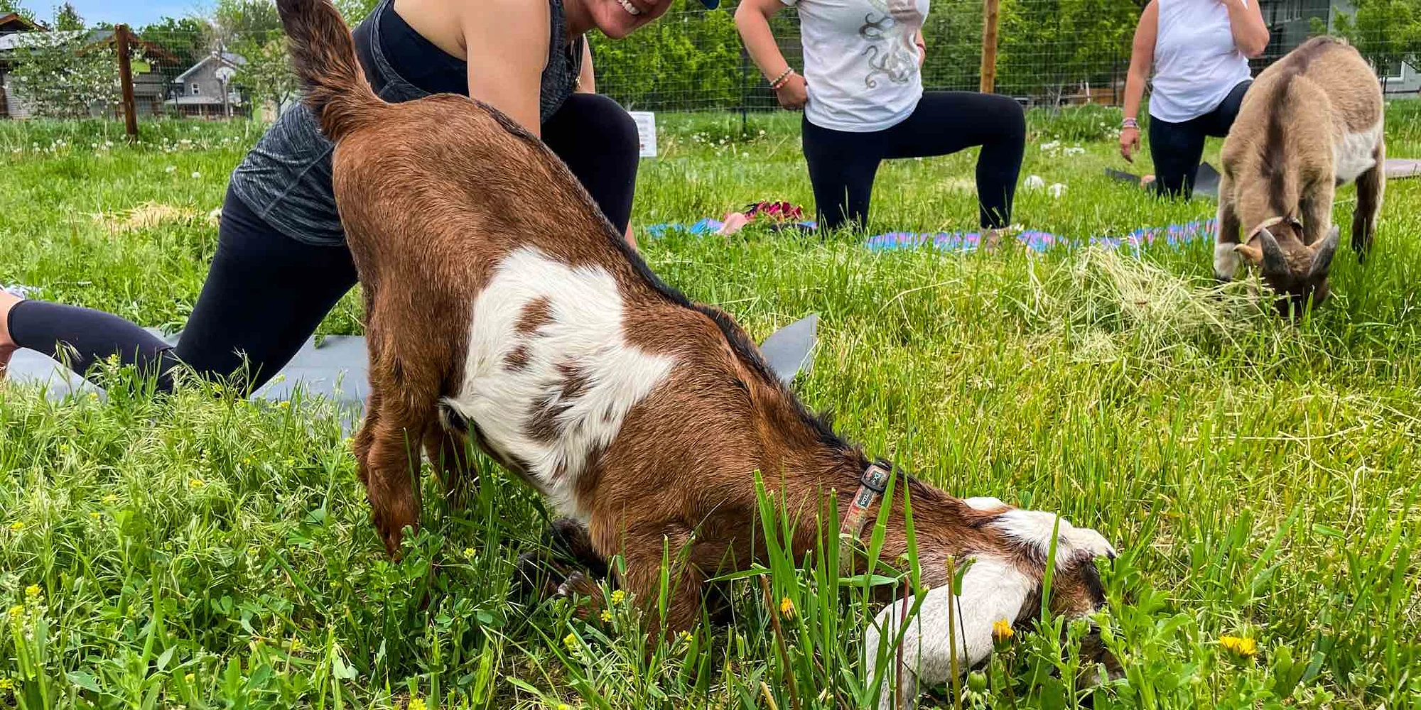 Join our local yoga instructor as they guide you through a one-hour outdoor yoga class positioned at the base of the foothills, in the orchard on our Boulder Farm. Share your yoga practice with the most adorable baby goats, providing extra entertainment, joy, snuggles, and laughter while you practice. This class is accessible to everyone, from entry-level to experienced yogis. Get your body moving and stretching and elevate your heart rate, all while connecting with the Earth. We encourage folks to bring their own yoga mat. A limited number of yoga mats are available for rent in advance. For all goat lovers, we invite you to add a lunchtime goat kid bottle feeding experience. All proceeds from this class directly support Growing Gardens Goat Dairy and its mission to connect residents back to the land, their food, and nature by providing access to sustainable agriculture, farm education, and humane dairy production. Saturday, April 25, 2026 Session 1: 10am-11am Session 2: 11:30am – 12:30pm Goat Kids Lunchtime Bottle Feeding: 12:30pm-12:45pm $37 per person for yoga* ADD ONS: Goat Bottle feeding ($22pp) and Yoga Mat Rental ($5pp) Register Here (rain date Saturday, May 9, 2026, same class times) *The minimum age for this event is 10 years old. Ticketed children 10 years and older can attend with a ticketed adult. Instructor: Megan Reznicek: Megan is a 600-Hour E RYT and has been teaching yoga for over a decade. She completed her 200-Hour training in Hatha Vinyasa at Providence Power Yoga and her 500-Hour training at Down Under School of Yoga in Cambridge, MA, with additional specialized trainings in Pre-Natal Yoga and Hands-On Assists. She is currently immersed in 200 hours of Katonah Yoga study. Her teaching has been shaped by learning from many teachers whose generosity and depth continue to inform her practice and pedagogy. Her classes are thoughtfully sequenced, alignment-focused, and weave together the many modalities and theories she feels inspired by. In her teaching, you’ll find careful attention to body mechanics, reverence for the practice’s lineage, and a commitment to creating warm, curious spaces where students feel supported in exploring their practice more deeply. Boulder Yoga Studio is the space Megan wants to practice at, a studio built teacher-forward, designed to elevate Boulder’s exceptional yoga community. Her vision is simple: bring her teachers onto the schedule and create the kind of space where both students and instructors feel at home and can grow in their practice.