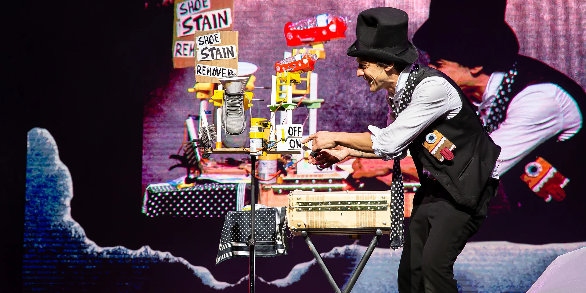Ticket sales for this program will open to the public at 12 PM on April 13. For the benefit of early access to tickets on April 9, click HERE to become a Member! Fresh off sold out runs in New York City, London, Sydney, and beyond, and featured on The Tonight Show with Jimmy Fallon, this show receives rave reviews everywhere it lands! Robots and magic and slapstick… oh my! Contagiously upbeat and full of heart, the ever-innovative Mario the Maker Magician leads you through a romping explosion of energy and belly laughs punctuated with moments of heart and emotion that will catch you by surprise. Not “just a kids’ show,” Mario the Maker Magician is an all-ages theatrical experience… for adults, kids, families… everyone, centered around magic and art. Do what you love, use what you have, and have fun! With robots to boot! Written & Performed by: Mario Marchese Produced by: Katie Rosa Marchese Show Warnings: Loud Vocals & Music; A couple of moemnets of very light water spray