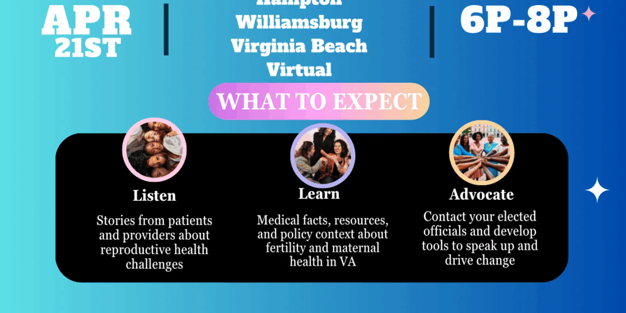 Join the Department of Psychology’s HU Path 2 PEACE Community Psychology & Self-Care Research Lab, the Tinina Q. Cade Foundation and our community partners for a powerful conversation about fertility and maternal health outcomes and laws that impact access to care. This dynamic discussion about reproductive and maternal health outcome disparities- solutions that improve outcomes and Virginia laws that affect fertility and maternal health . We are joining forces with trailblazing Virginia based organizations for this state wide Summit. Come to listen learn advocate and leave empowered and encouraged. Date: April 21, 2026 Time: 6pm-8pm EST Location: Hampton University Student Center Ballroom REGISTER HERE