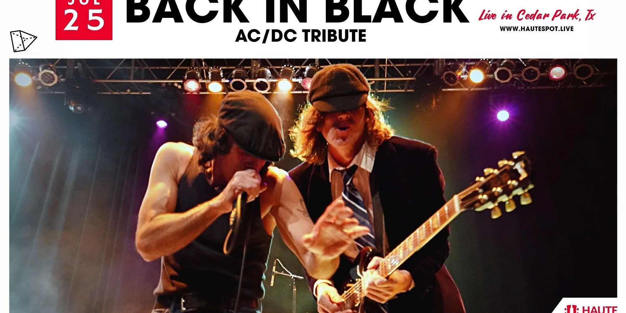 Back in Black AC/DC Tribute live at Haute Spot Get Tickets We’re thrilled to welcome Back In Black to Haute Spot on Saturday, July 25th, 2026! EVENT DETAILS DATE: Saturday, July 25th, 2026 TIME: Doors at 6pm | Happy Hour until 7pm SUPPORT: TBA LOCATION: Haute Spot - 1501 E New Hope Dr. Cedar Park, Tx 78641 *Times Subject to Change About Haute Spot: Haute Spot is Cedar Park's premier outdoor music venue - along with heaters, food, drinks and live music under the stars! Limited Tables and Seats available - so act fast! Tables come with food and drink delivery service as well through our QR codes. get tickets See all upcoming Haute Spot shows here.