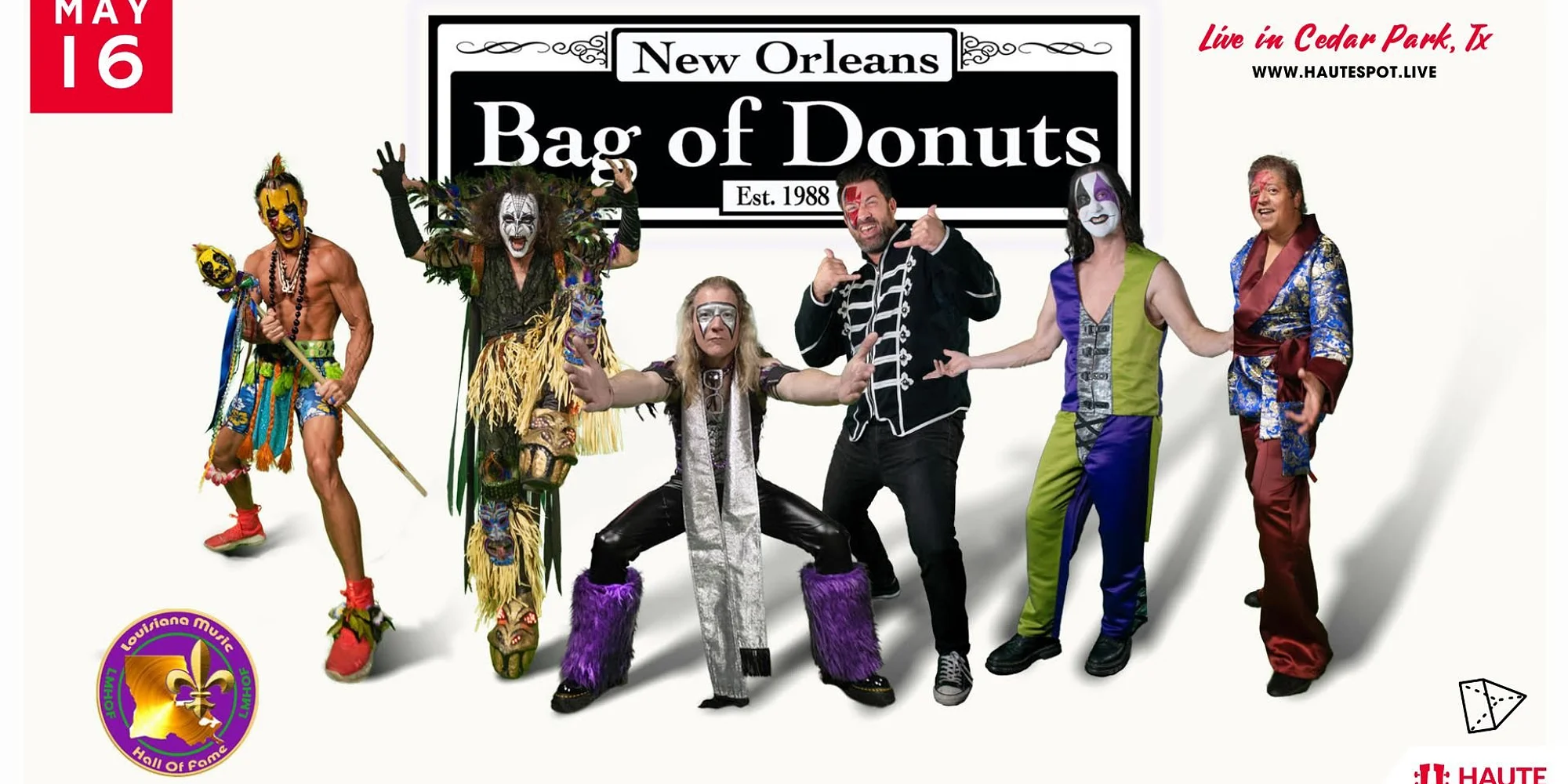 BAG OF DONUTS Live at Haute Spot Get Tickets EVENT DETAILS DATE: Show Date: Saturday, May 16th, 2026 TIME: Doors at 6:00 PM | Happy Hour until 7:00 PM SUPPORT: TBA LOCATION: Haute Spot - 1501 E New Hope Dr. Cedar Park, Tx 78641 *Times Subject to Change About Haute Spot: Haute Spot is Cedar Park's premier outdoor music venue - along with heaters, food, drinks and live music under the stars! Limited Tables and Seats available - so act fast! Tables come with food and drink delivery service as well through our QR codes. get tickets See all upcoming Haute Spot shows here.