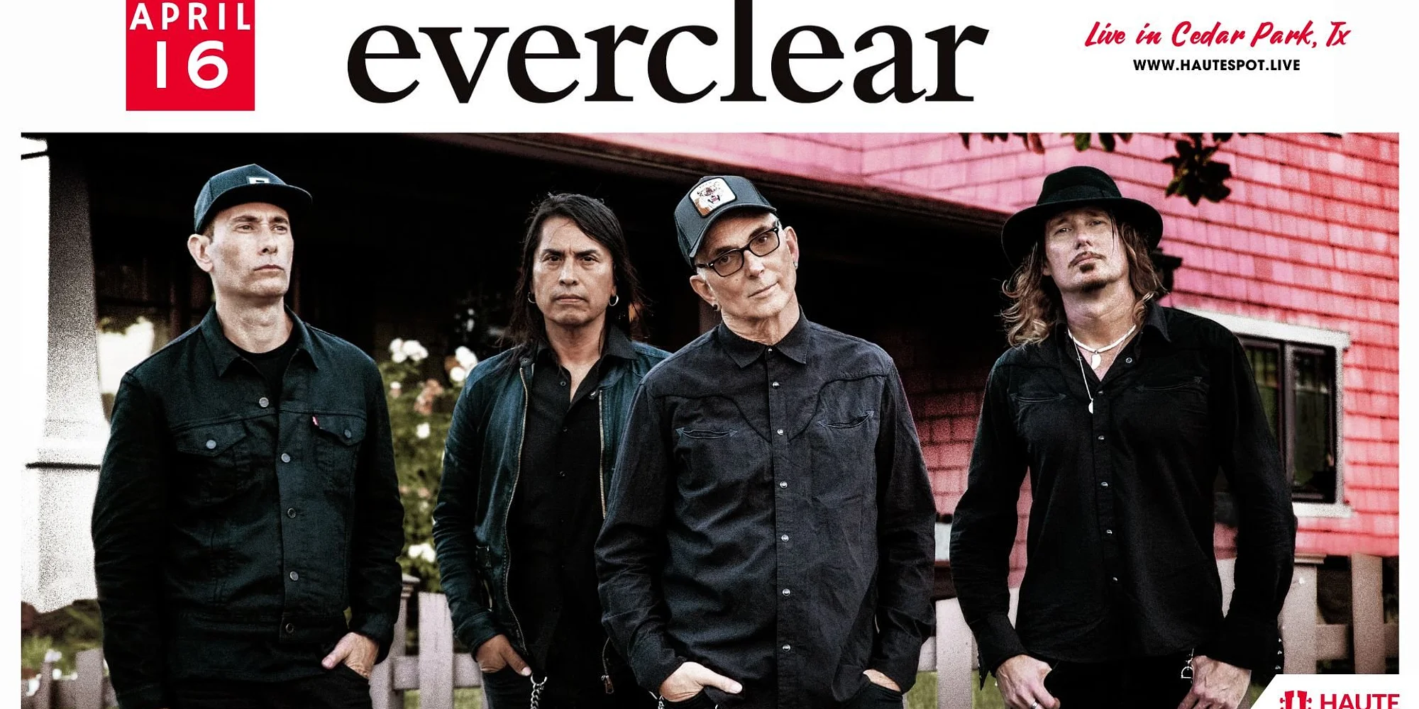 EVERCLEAR Live at Haute Spot Get Tickets We’re thrilled to welcome Everclear at Haute Spot in Cedar Park, Tx on Thursday, April 16th, 2026! EVENT DETAILS DATE: Show Date: Thursday, April 16th, 2026 TIME: Doors at 5:00 PM | Happy Hour until 6:00 PM SUPPORT: TBA LOCATION: Haute Spot - 1501 E New Hope Dr. Cedar Park, Tx 78641 *Times Subject to Change About Haute Spot: Haute Spot is Cedar Park's premier outdoor music venue - along with heaters, food, drinks and live music under the stars! Limited Tables and Seats available - so act fast! Tables come with food and drink delivery service as well through our QR codes. get tickets See all upcoming Haute Spot shows here.
