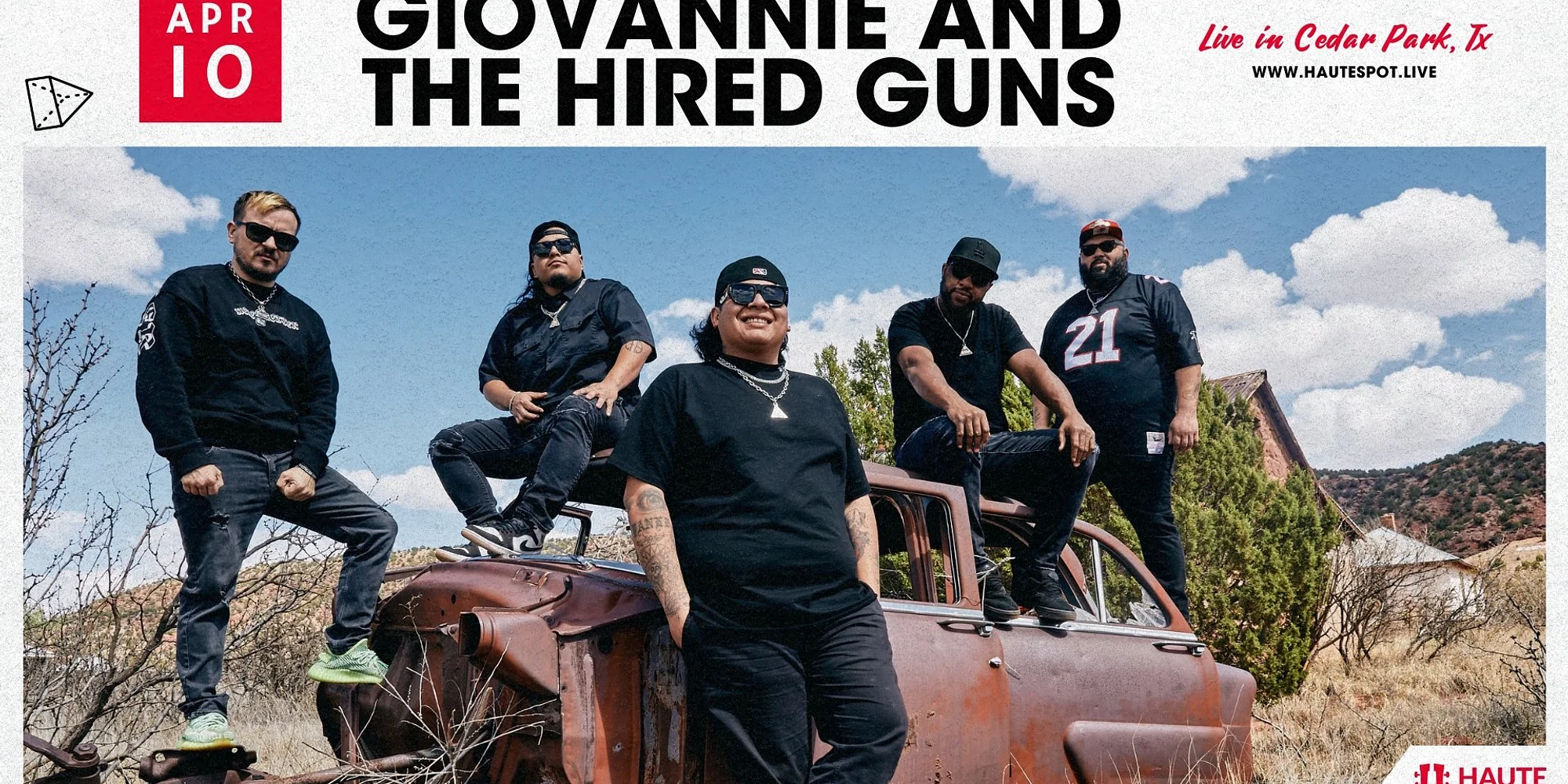 Giovannie & The Hired Guns Get Tickets We’re thrilled to welcome Giovannie & The HIred Guns at Haute Spot in Cedar Park, Tx on Friday, April 10th, 2026! EVENT DETAILS DATE: Show Date: Friday, April 10th, 2026 TIME: Doors at 6:00 PM | Happy Hour until 7:00 PM SUPPORT: TBA LOCATION: Haute Spot - 1501 E New Hope Dr. Cedar Park, Tx 78641 *Times Subject to Change About Haute Spot: Haute Spot is Cedar Park's premier outdoor music venue - along with heaters, food, drinks and live music under the stars! Limited Tables and Seats available - so act fast! Tables come with food and drink delivery service as well through our QR codes. get tickets See all upcoming Haute Spot shows here.
