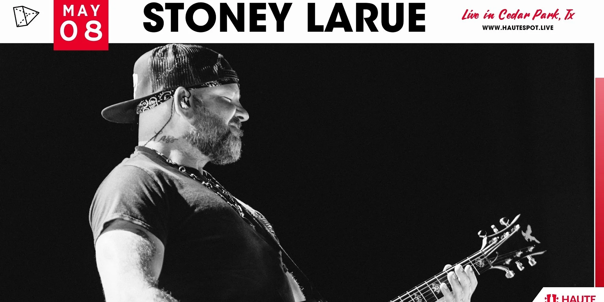 Stoney LaRue Live at Haute Spot Get Tickets EVENT DETAILS DATE: Show Date: Friday, May 8th, 2026 TIME: Doors at 6:00 PM | Happy Hour until 7:00 PM SUPPORT: TBA LOCATION: Haute Spot - 1501 E New Hope Dr. Cedar Park, Tx 78641 *Times Subject to Change About Haute Spot: Haute Spot is Cedar Park's premier outdoor music venue - along with heaters, food, drinks and live music under the stars! Limited Tables and Seats available - so act fast! Tables come with food and drink delivery service as well through our QR codes. get tickets See all upcoming Haute Spot shows here.