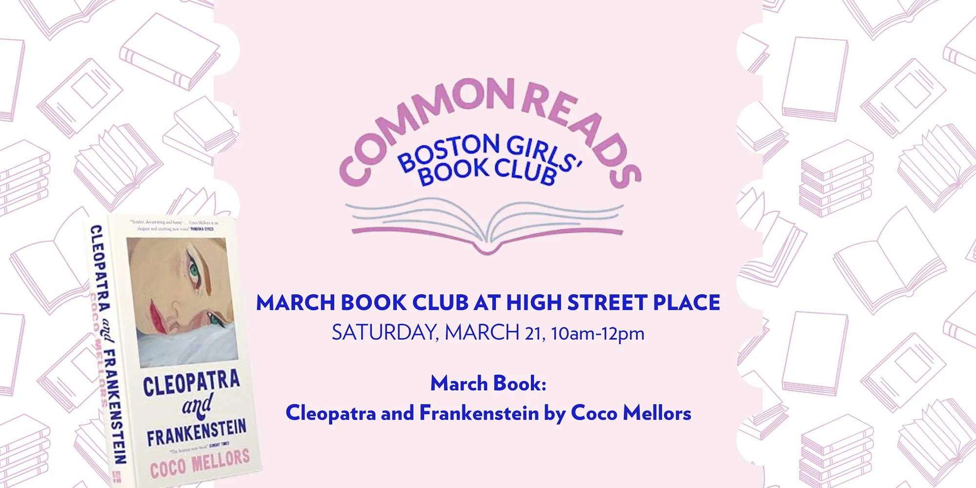 Join Common Reads for their March book club meeting at High Street Place! It will be a cozy Saturday morning of conversation, connection, and community. We’ll be discussing Cleopatra & Frankenstein by Coco Mellors, with specialty drinks inspired by the book and plenty of time to connect with other members. Your ticket includes a gift card to use at High Street Place restaurants during the event with specialty bites and sips inspired by our book of the month and a chance to win some exciting giveaways! This is a capacity event, so all attendees must have a ticket. All updates will be shared in the Common Reads broadcast channel on @eliedelaney’s Instagram and @commonreads.boston. TICKETS