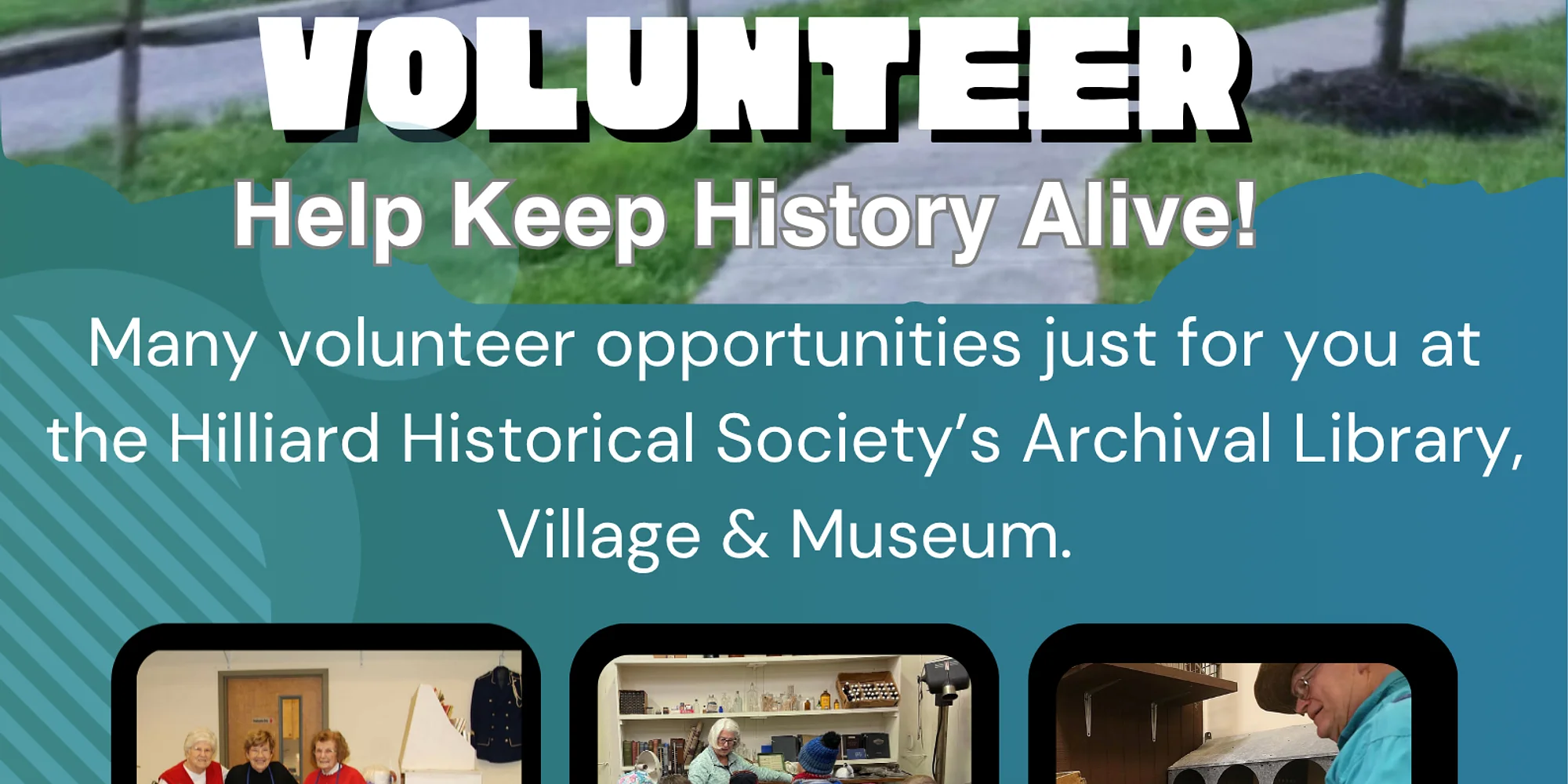 The most important part of any historical society are the people in it! At the Hilliard Historical Library, Village and Museum our mission is to keep history alive and it’s our volunteers who make that happen. There are many volunteer opportunities throughout the year with Educational tours, and special events like: Heritage Day, Haunted Village, Tree Lighting, and Santa in the Village. We have people working on our archives, history projects, gardening, landscaping, and maintenance. Sign up today! Orientation/Training Sign-up