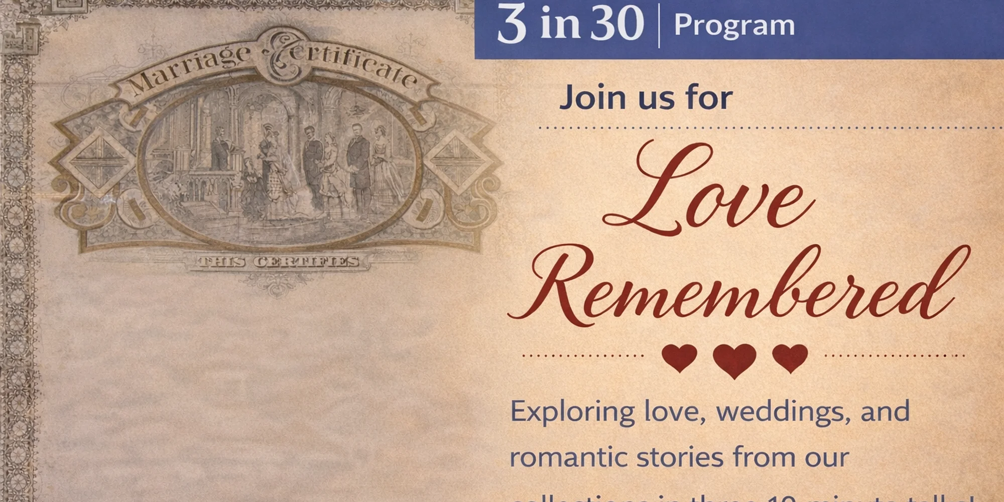 Join us for 3 in 30: Love Remembered, where we examine three artifacts in just thirty minutes. This program looks at how affection, devotion, and remembrance were expressed in the past through the things people made, exchanged, and cherished. Together, we’ll explore: -Familial bonds and the care invested in teaching, guiding, and creating -Romantic connections expressed through personal correspondence and shared sentiment -Love after death and the ways people honored and remembered those they lost This brief, focused program offers insight into the social history of emotion and the powerful ways love has shaped material culture. Whether you’re a longtime museum-goer or newly curious, Love Remembered invites you to discover how three small objects can tell big stories. Come celebrate the many forms of love with us this February.