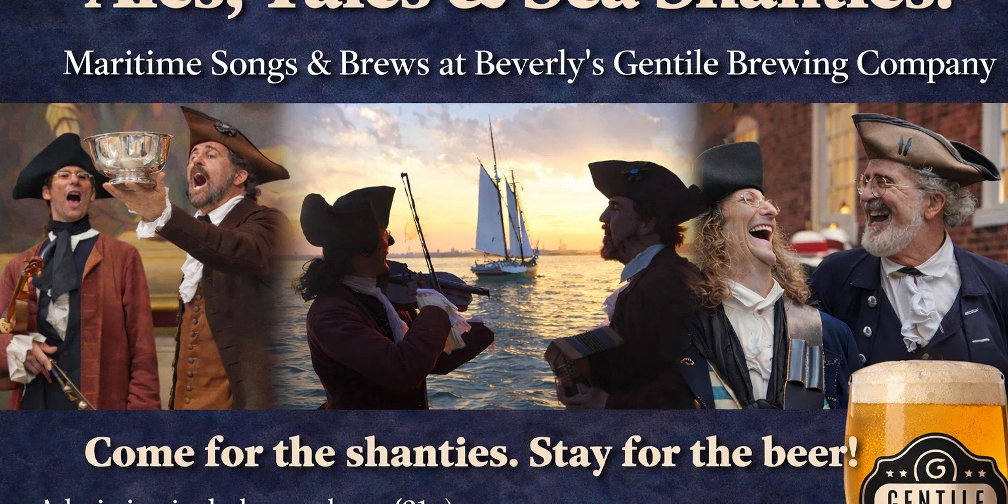 Hoist a pint and lift your voice! Join Historic Beverly for an evening of maritime music, local history, and good beer at Beverly’s beloved Gentile Brewing Company. Sea shanties once echoed along Beverly’s waterfront, sung by daring Revolutionary War privateers to keep time while hauling lines, raising sails, and working the docks. At this very special public program, those songs come alive again through spirited performances, storytelling, and communal singing led by rapscallions Jeremy Bell and Larry Young in a modern-day gathering place: the Gentile Brewing Company taproom. Learn the history behind these rollicking tunes, discover Beverly’s deep maritime connections to the American Revolution, and enjoy a cold brew while you sing along. No musical experience required, just a love of history, music, fun, and a well-poured beer. Come for the shanties. Stay for the beer. Leave with a deeper connection to Beverly’s maritime past! Admission includes one beer (21+) or soft drink per ticket. Recommended for ages 18+