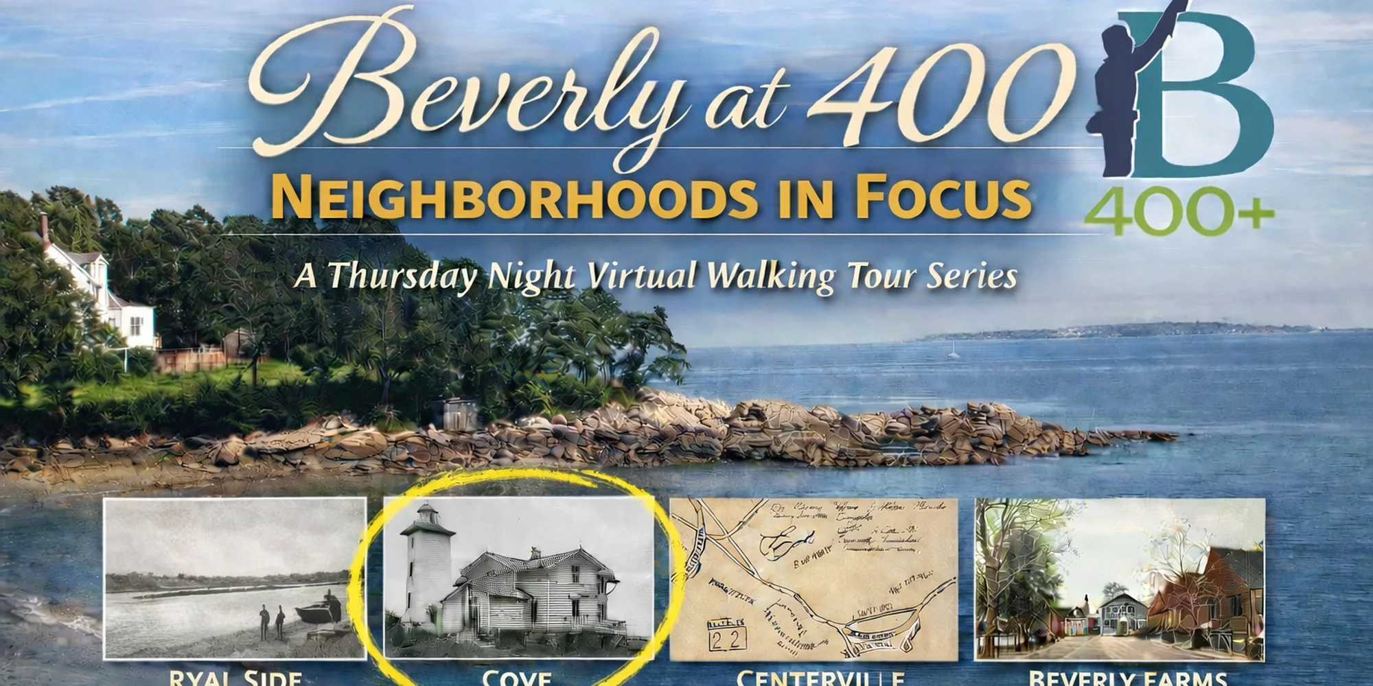 As Beverly celebrates its 400th anniversary, Historic Beverly invites you to explore the city neighborhood by neighborhood through a special series of Thursday night virtual walking tours this March. Each live, guided program highlights a distinct Beverly neighborhood, revealing how geography, industry, architecture, and community life shaped the city over four centuries. Using historic photographs, maps, and storytelling, Historic Beverly staff bring Beverly’s streets directly to your screen with no walking required. Neighborhoods Featured Ryal Side – Discover the story of one of Beverly’s earliest settled areas, shaped by river life, industry, and generations of neighborhood growth. Cove – Explore Beverly’s deep maritime roots through the waterfront, shipbuilding, trade, and coastal life that defined this historic neighborhood. Centerville – Uncover the layered history of this crossroads community, where transportation routes, small businesses, and everyday life intersected. Beverly Farms – Step into the evolution of a seaside village known for its landscapes, summer estates, rail connections, and strong sense of place. Why Attend? Celebrate Bev400 by seeing how Beverly’s neighborhoods tell the story of 400 years of change and continuity Experience engaging walking tours from anywhere through a live virtual format Gain new insight into familiar places and their rich histories This series is perfect for longtime residents, new neighbors, history enthusiasts, and anyone curious about how Beverly became the city it is today. Live on Thursday evenings in March | Virtual Program Registration required. Zoom link provided upon registration.