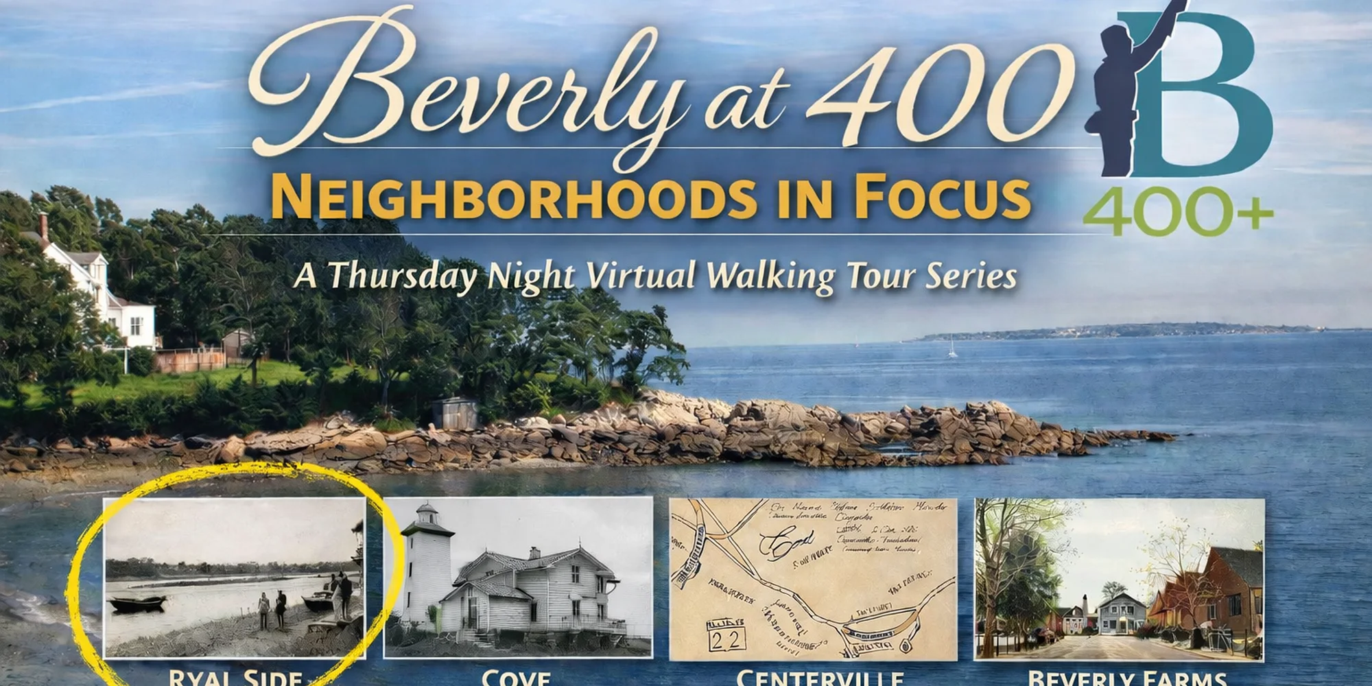 As Beverly celebrates its 400th anniversary, Historic Beverly invites you to explore the city neighborhood by neighborhood through a special series of Thursday night virtual walking tours this March. Each live, guided program highlights a distinct Beverly neighborhood, revealing how geography, industry, architecture, and community life shaped the city over four centuries. Using historic photographs, maps, and storytelling, Historic Beverly staff bring Beverly’s streets directly to your screen with no walking required. Neighborhoods Featured Ryal Side – Discover the story of one of Beverly’s earliest settled areas, shaped by river life, industry, and generations of neighborhood growth. Cove – Explore Beverly’s deep maritime roots through the waterfront, shipbuilding, trade, and coastal life that defined this historic neighborhood. Centerville – Uncover the layered history of this crossroads community, where transportation routes, small businesses, and everyday life intersected. Beverly Farms – Step into the evolution of a seaside village known for its landscapes, summer estates, rail connections, and strong sense of place. Why Attend? Celebrate Bev400 by seeing how Beverly’s neighborhoods tell the story of 400 years of change and continuity Experience engaging walking tours from anywhere through a live virtual format Gain new insight into familiar places and their rich histories This series is perfect for longtime residents, new neighbors, history enthusiasts, and anyone curious about how Beverly became the city it is today. Live on Thursday evenings in March | Virtual Program Registration required. Zoom link provided upon registration.
