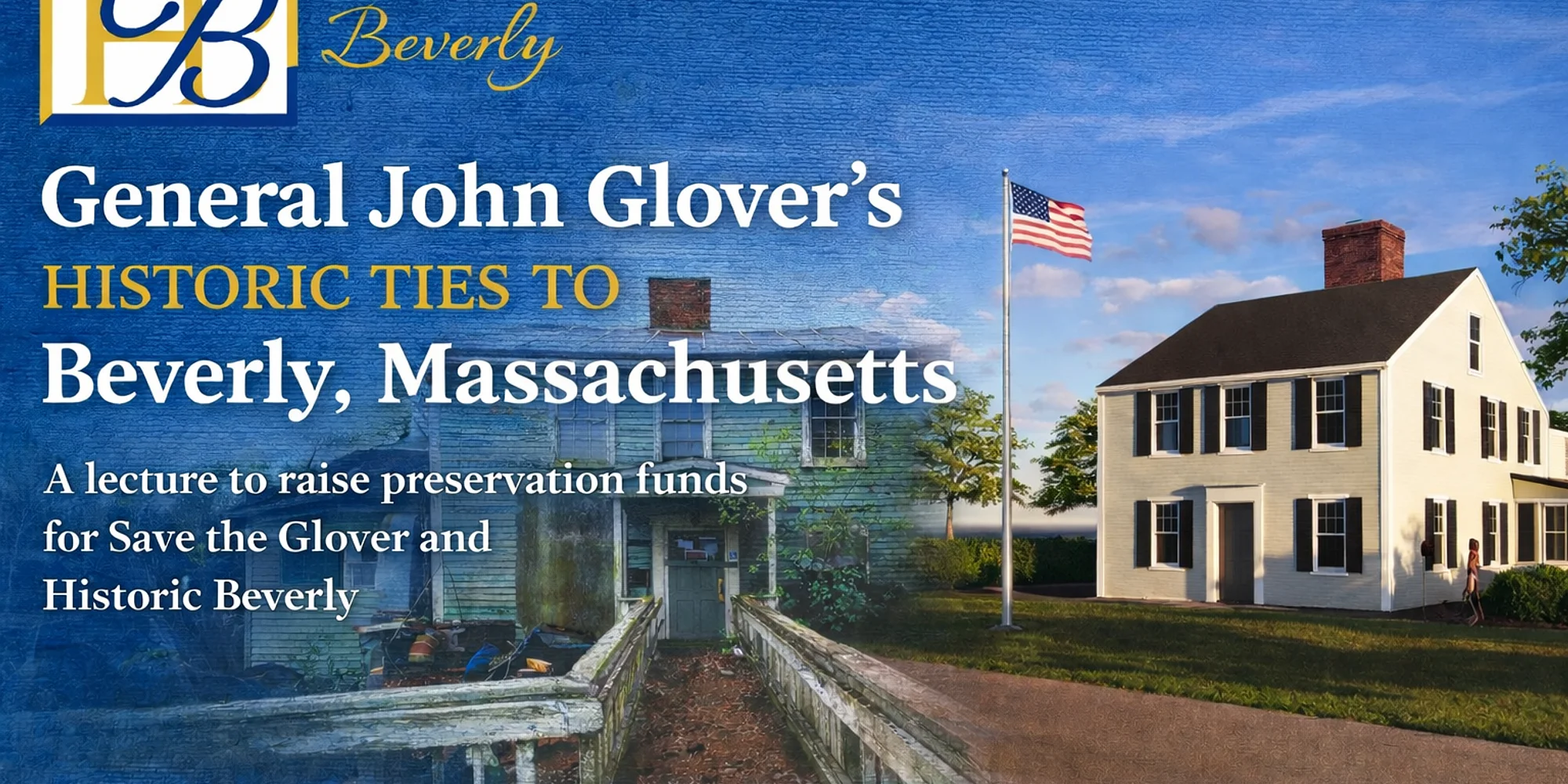 General John Glover (1732-1797) has two extant homes: his elegant mansion in Glover Square in Marblehead, Massachusetts and his final home, a modest farmhouse, in Vinnin Square, Swampscott. Beverly was, in a sense, his third home, or at least a center of his business operations. Glover owned a wharf in Beverly where he outfitted the first vessel in Washington’s Navy, the schooner Hannah. His 14th Continental Regiment defended Beverly Harbor from attack by the British Royal Navy. Glover first read the Declaration of Independence to his assembled troops in July 1776 at what is now known as Beverly’s Independence Park. His business colleagues in Beverly worked closely with him to manage supplies and captured privateer prizes. As we celebrate Beverly’s 400th birthday, and the 250th birthday of the country, let us mark these important milestones on Armed Forces Day by hearing about the on-going preservation efforts to save Glover’s farmhouse. Nancy Lusignan Schultz, Ph.D., Chair of the Swampscott Historical Commission, will update us on this important work of saving the final home of a Revolutionary War hero during this Semiquincentennial year. This is a combined fundraiser program for preservation efforts for both Historic Beverly and Save the Glover.