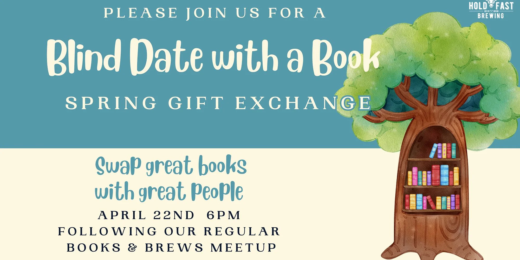 Join us at Hold Fast Brewing for our another Spring Book Exchange! If you would like to participate, bring a book you love and want to share wrapped up with a few words or sentences describing the book (without giving it away) written on the wrapping. We will draw numbers, play a game and swap books!